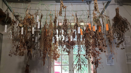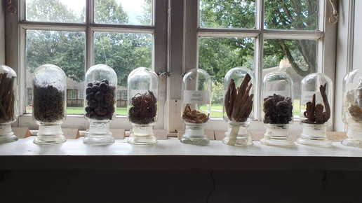 Interessanterweise befindet sich die Stößerkammer, in der früher alle Teedrogen verarbeitet wurden, in einem separaten Raum. Genau wie es heute die Apothekenbetriebsordnung fordert, war sie also abgetrennt von der Rezeptur, in der Cremes gemischt oder Tabletten hergestellt wurden. Gelagert wurden die verschiedenen Kräuter dagegen in der Rezeptur. Zahlreiche beschriftete Schübe und Standgefäße lassen die Zuschauer über die Vielfalt der Heilkräuter staunen, die noch vor gar nicht allzu langer Zeit zur Anwendung kamen.