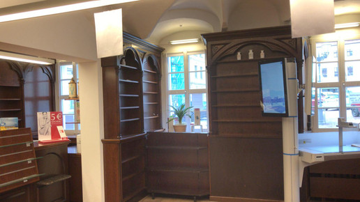 Zu der Situation war es am 10. Januar gekommen. Ein Wasserschaden über dem Gewölbe der historischen Offizin destabilisierte die gesamte Decke. Es herrschte akute Einsturzgefahr. Also mussten Boragk und ihre Mitarbeiter schnell umsatteln: Durch glücklichen Zufall konnte sie Geschäftsräume auf der gegenüberliegenden Seite des Großenhainer Markts anmieten. Aus dem Stegreif bauten sie dort eine Behelfsapotheke hinein – in der Hoffnung, dass sie nur kurz dort bleiben werden.