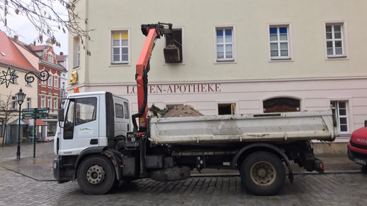 Doch immerhin haben sie dann die ständige Rennerei hinter sich. Denn mehr als die Hälfte des Generalalphabets, Labor und Rezeptur waren auch nach der Evakuierung in dem Teil des Gebäudes verblieben, der nicht einsturzgefährdet ist. Für Boragk und ihre Mitarbeiter heißt das: Sie müssen ständig die 150 Meter von der Behelfsoffizin in die eigentliche Apotheke und zurück, um Ware zu holen. „Das ist schon ein logistischer Mehraufwand. Ich weiß nicht, wie viele Kilometer wir da am Tag zurücklegen“, erzählt sie. „Aber wenigstens hatten wir keinen Schnee und keinen Regen. Damit wäre es noch viel schwerer gewesen.“ Denn der Marktplatz ist mit ebenfalls historischem Kopfsteinpflaster belegt. „Da kann man leicht umknicken, wenn man eine schwere Kiste trägt und nicht nach unten schauen kann.“