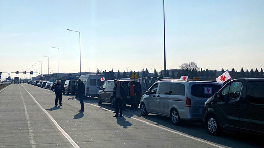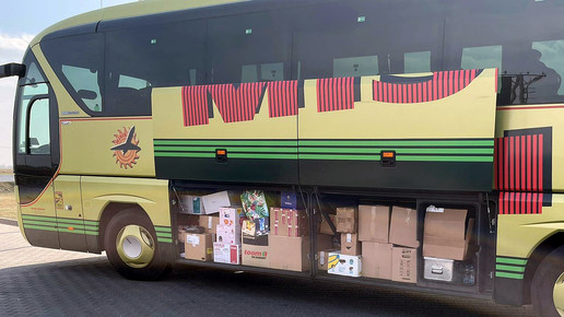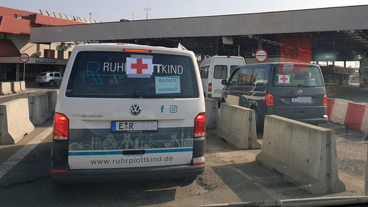 Anders als bei der Premiere vor einigen Wochen fuhr die Noweda nicht alleine, sondern schloss sich einem 7,5-Tonner einem großen Hilfskonvoi an, den ein breites Essener Bündnis initiiert hatte. So machten sich am 25. März insgesamt 34 Transporter, zwei Rettungswagen sowie zwei Reisebusse auf den Weg Richtung Ukraine. Die Busse haben auf der Rückreise rund 140 Frauen und Kinder nach Deutschland gebracht. Für sie waren bereits privat organisierte Unterkünfte vorbereitet.
