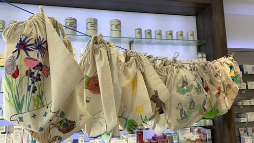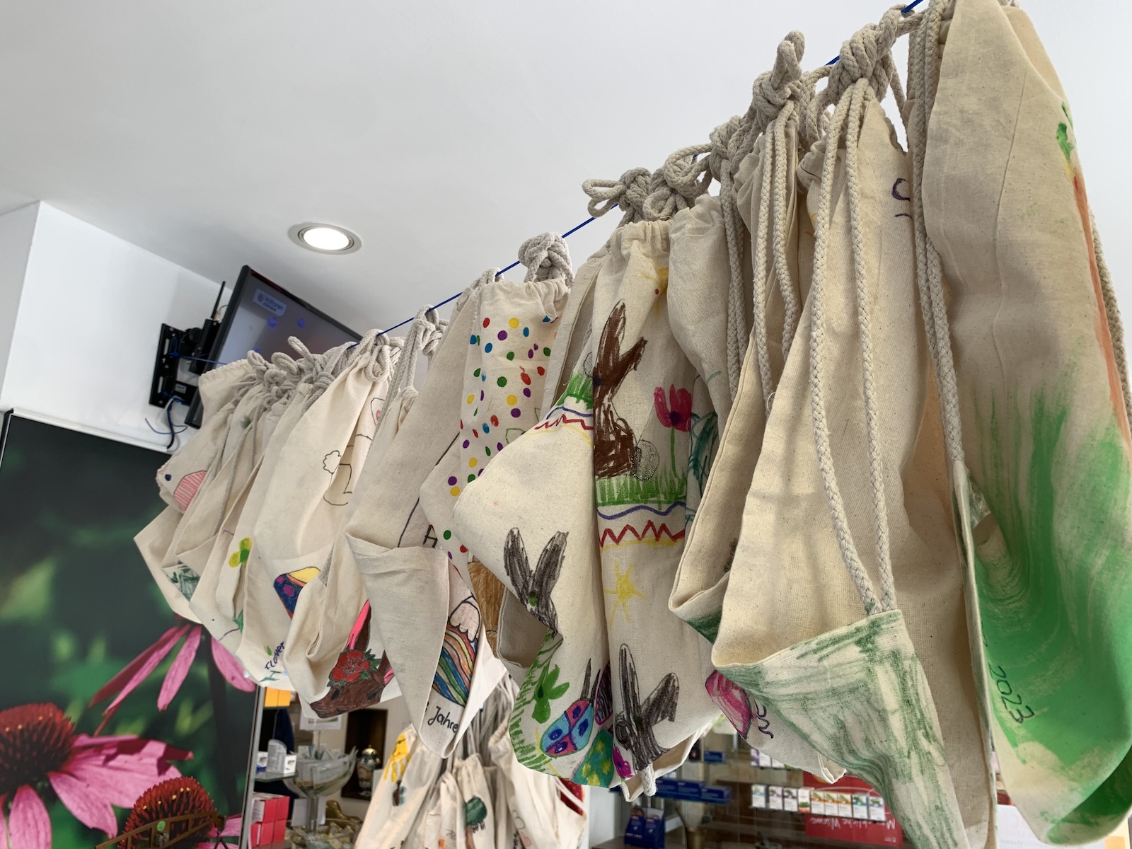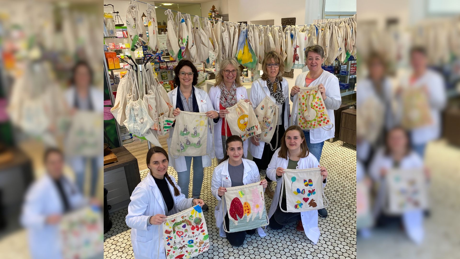 Die Osterzeit nutzen viele Apotheken für Aktionen. Inhaberin Cathrin Schmitz und ihr Team der Löwen-Apotheke in Radevormwald haben sich in diesem Jahr eine besondere Bastelaktion überlegt: Die Kinder bekamen Blanko-Stoffbeutel, die sie österlich bemalen und dekorieren durften. Insgesamt sind mehr als 200 Beutel zurückgekommen.