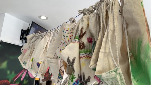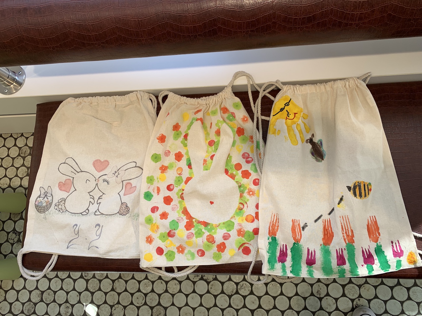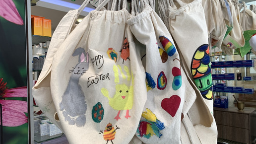 „Wir haben uns dafür entschieden, statt Eiern diesmal Blanko-Turnbeutel zum Bemalen zu verteilen.“ Drei Wochen hatten die Kinder aus der Umgebung Zeit, ihre Taschen in kleine Kunstwerke zu verwandeln. Alles rund um das Thema Ostern durfte seinen Platz finden. Dabei seien die Kleinen wirklich kreativ geworden, berichtet die Inhaberin begeistert. „Von Hand- und Fußabdrücken bishin zu Tulpen aus Gabelabdrücken und anderen Verzierungen war alles dabei.“