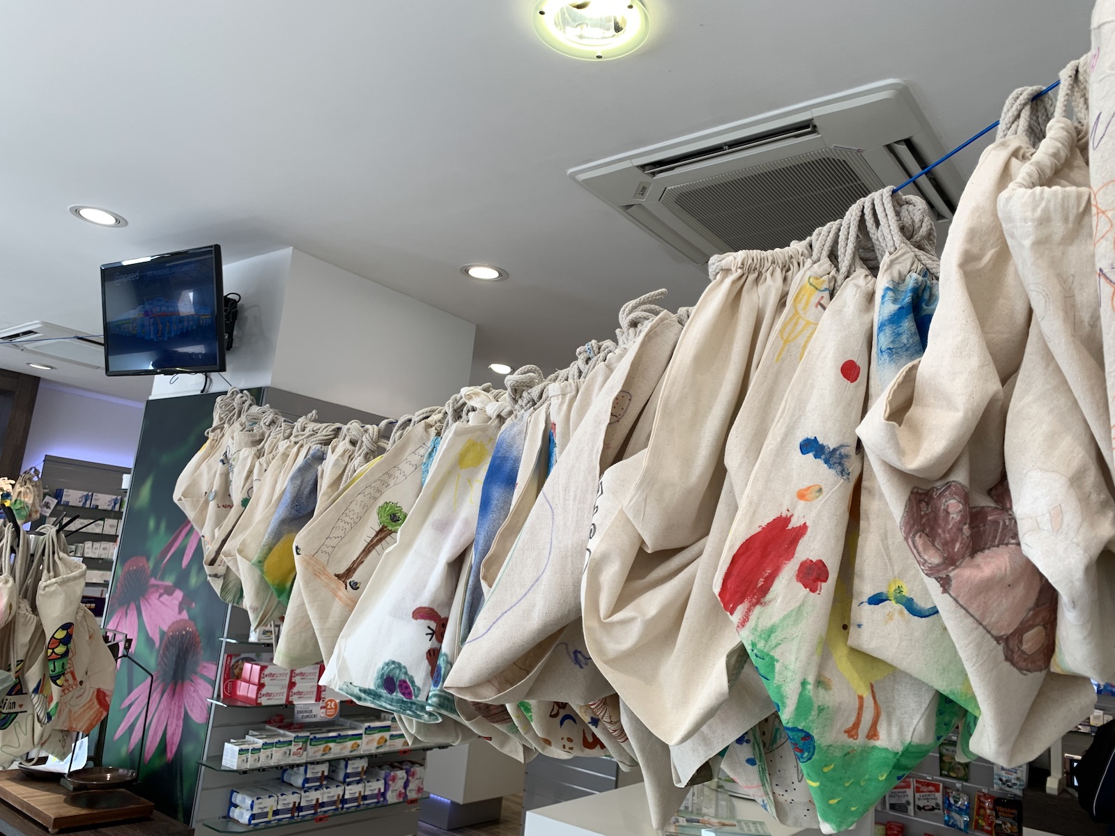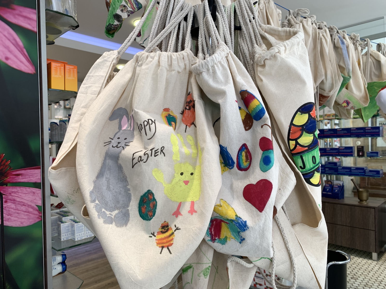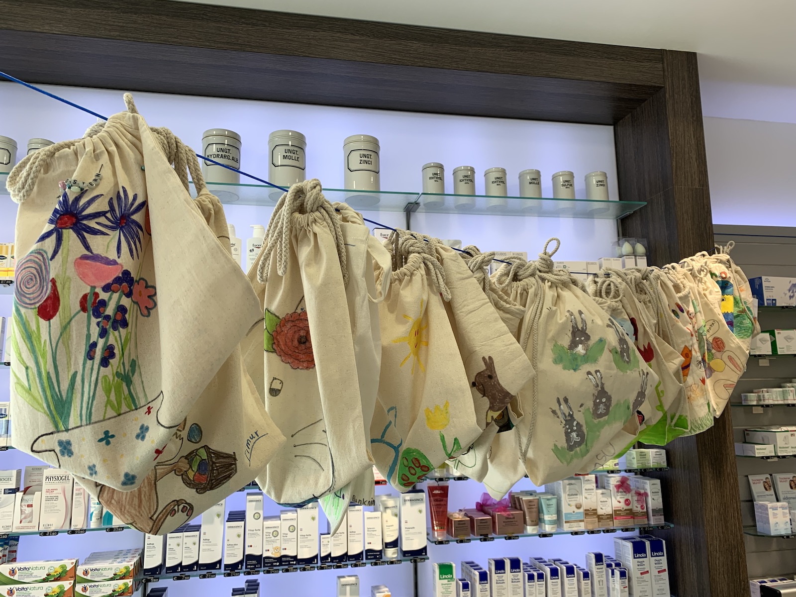 Die verschönerten Beutel sollten dann wieder in der Apotheke abgegeben werden, damit sie vom Osterhasen befüllt werden können. Dazu wurden sie in der Offizin an einer Wäscheleine aufgehängt. „Mittlerweile ist die ganze Offizin voll“, freut sich Schmitz. Zunächst waren 100 Beutel bestellt worden – die waren jedoch schnell vergriffen, sodass Nachschub hermusste. „Einige Kinder und Eltern kamen sogar häufiger, um nachzufragen, ob denn schon neue Beutel da sind. Die Aktion war wirklich ein voller Erfolg.“ Selbst als alle 200 Stoffbeutel verteilt waren, seien noch Nachfragen gekommen. „Um die Kinder nicht wegschicken zu müssen, haben wir dann gesagt, sie sollen einfach eine eigene bemalte Tasche zum Füllen vorbeibringen.“