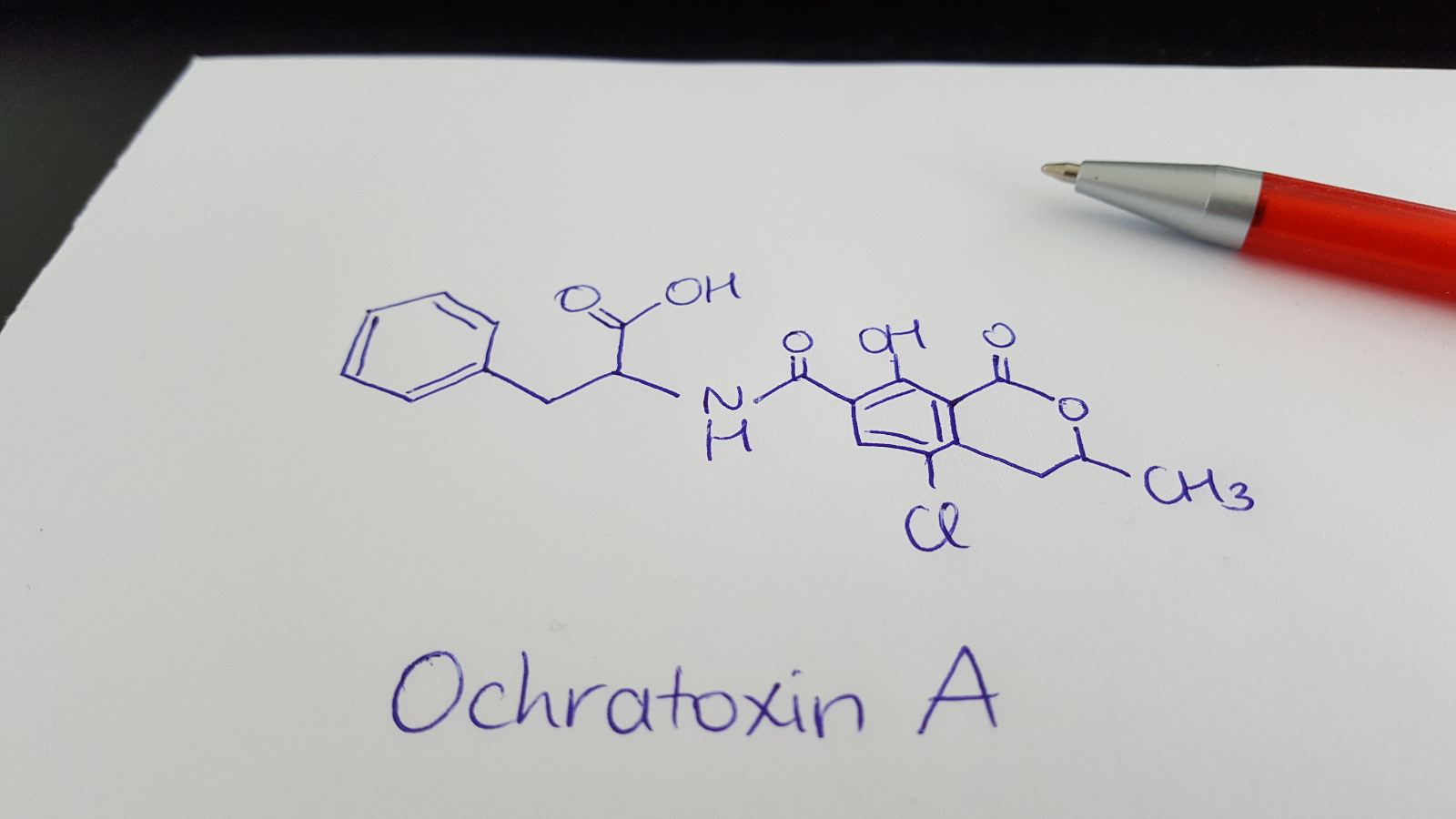 OTA wird von verschiedenen Schimmelpilzen der Aspergillus- und Penicillum-Arten produziert und ist eines der am häufigsten vorkommenden Mykotoxine, die Lebensmittel kontaminieren. Da die Penicillien und Aspergillen neben OTA noch eine Reihe anderer Toxine bilden können, kommt die Substanz häufig zusammen mit sogenannten Begleittoxinen vor, zum Beispiel Citrinin und Penicillinsäure.