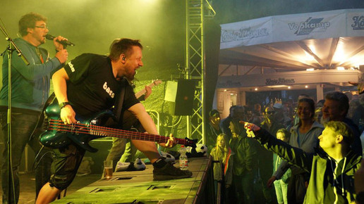 Was mittlerweile nicht mehr gar so häufig vorkommt. „Wir alle machen Musik nur als Hobby“, bekundet der Sänger. Mehr als vier, fünf Auftritte im Jahr seien nicht zu schaffen. „Hinzu kommt, dass wir langsam in ein Alter kommen, in dem man die Apotheke auch schon mal von innen sieht. Irgendetwas ist immer – und wenn es nur die Magnesiumtabletten für die beanspruchten Muskeln oder die Schmerztabletten für den Tag nach dem Auftritt sind ...“