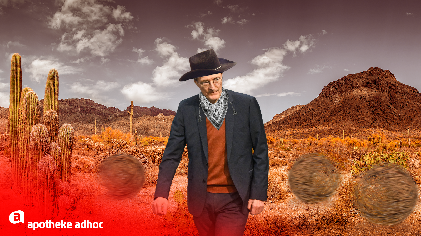Die Prärie. Das Gefühl unendlicher Weite. Trockenes Gras. Ein Steppenläufer weht im Hintergrund quälend langsam durch die Landschaft, weiter vorne sind drei Personen in ein Gespräch vertieft: Sheriff Karl „Badlands“ Lauterbach, Marshal Matthias Mieves und Cowgirl Paula Piechotta. Ihre gemeinsame Mission ist die Revolutionierung des deutschen Gesundheitssystems. Nur: Wo sind die Apotheken hier überhaupt?