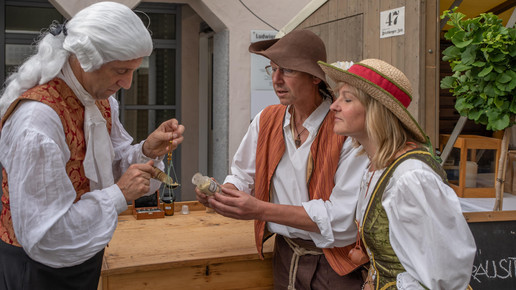Alle drei Jahre befindet im schwäbischen Friedberg eines der größten historischen Feste der Region statt. Auf dem „Friedberger Zeit“ getauften Altstadtfest ist auch Apotheker Dr. Hannes Proeller jedes Mal anzutreffen. Dann glänzt er jedoch nicht mit pharmazeutischem Rat für die Besucher, sondern mit unterhaltsamen Schauspieleinlagen. Und auch am HV-Tisch lässt der Apotheker hin und wieder sein Schauspieltalent aufblitzen.