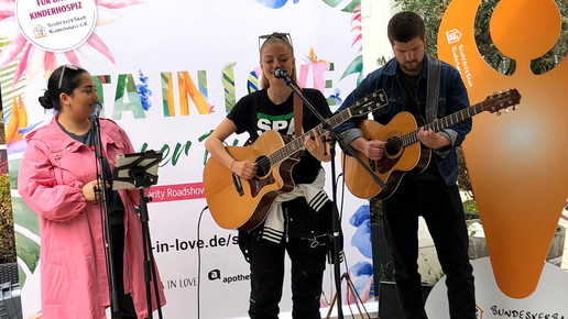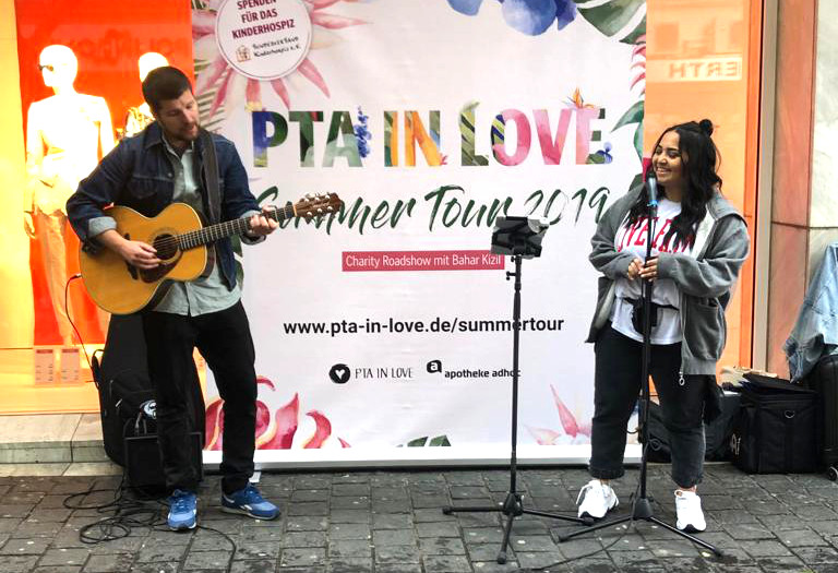 PTA IN LOVE und APOTHEKE ADHOC haben mit der Summer Tour einen Erfolg gelandet. Mit Straßenkonzerten der Sängerin Bahar Kizil wurde in verschiedenen Städten auf die Arbeit des Bundesverbands Kinderhospiz aufmerksam gemacht. Vor Ort kamen rund 2000 Euro zusammen. Die Summe wurde von PTA IN LOVE und APOTHEKE ADHOC verdoppelt und gestern in Berlin übergeben.