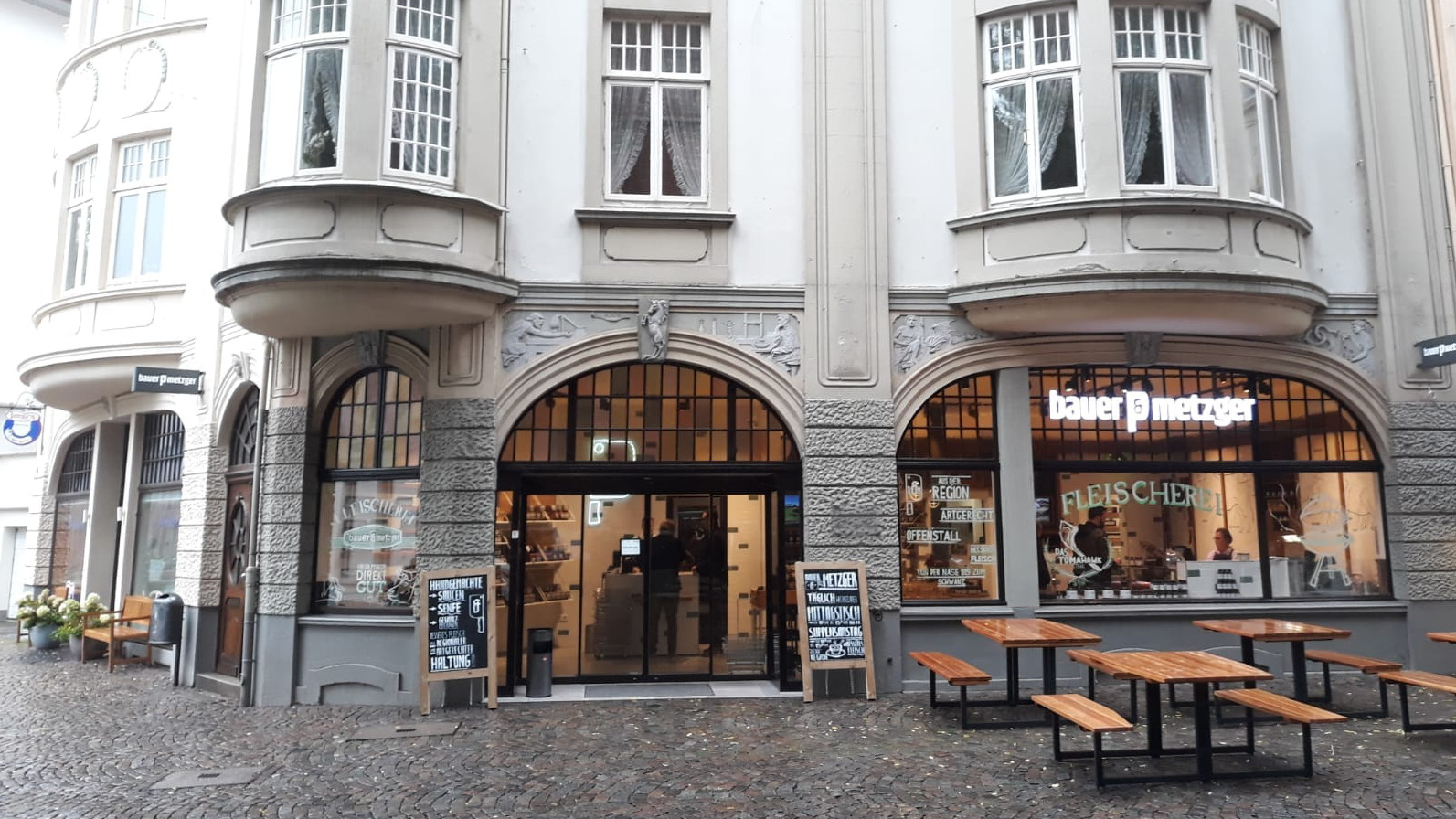 Die Metzgerei finden Kunden nun auf den 150 Quadratmetern der ehemaligen Offizin. Auf der Website ist nachzulesen: „Bei deinem ersten Besuch wird dir sicherlich ein scheinbarer Widerspruch auffallen, denn Ursprungsgedanke und Grundidee von Bauer und Metzger war die Verbindung zweier Welten: Ein topmodernes Erscheinungsbild gepaart mit der bedingungslosen Hingabe zur guten Tradition des Fleischerei-Handwerks."
