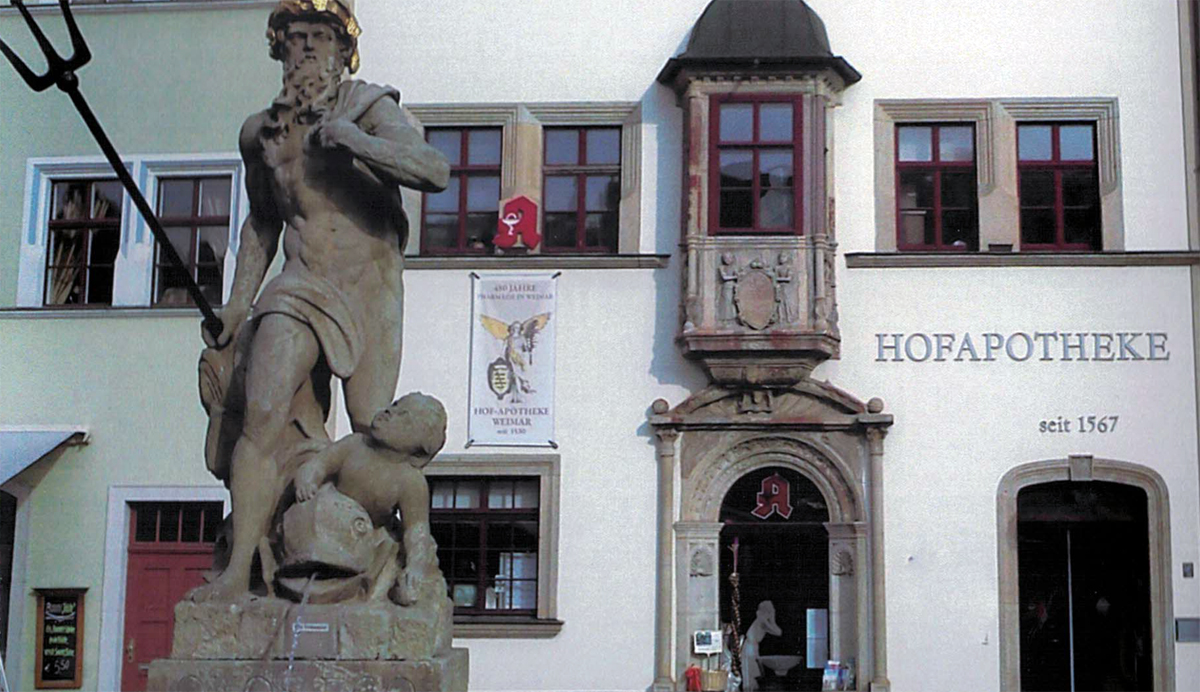 „Die Apotheke wurde im Jahr 1567 gegründet“, erzählt er. Im vergangenen Jahr wurde der 450. Geburtstag des Unternehmens gefeiert. Heute wird im Kirms-Krackow-Haus die Ausstellung „450 Jahre Weimarer Hofapotheke" eröffnet. „Die Idee kommt vom Freundeskreis Goethe Nationalmuseum.“ Es ist keine Riesen-Ausstellung, eher etwas für Menschen mit einer Vorliebe für alte Dokumente. „Wir zeigen Originaldokumente, alte Zeitungen, Medizinalordnungen, Privilegien, alles Stücke aus meiner Sammlung.“ Die Gründungsurkunde der Hofapotheke ist dabei das Prunkstück. Normalerweise verwahrt sie der Apotheker wie alle anderen Ausstellungsstücke auch an einem geheimen Ort. „Sie sind aus Pergament, man muss sie nicht konservieren.“