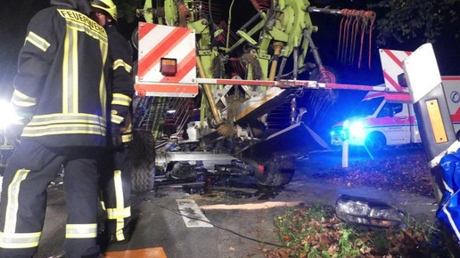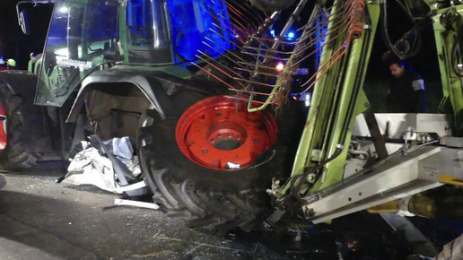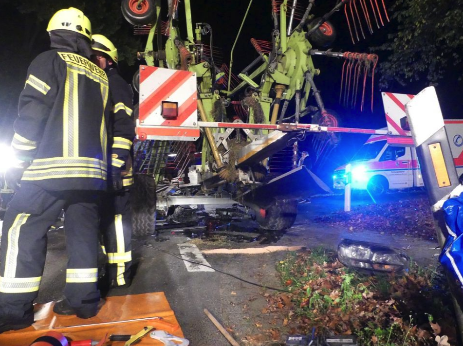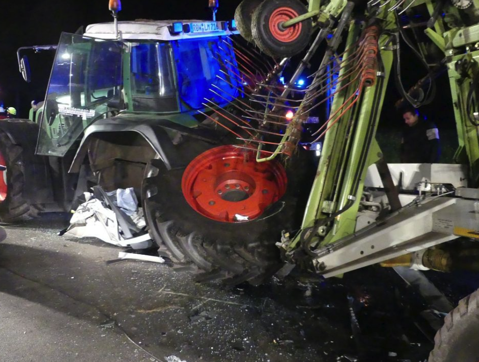 Am Dienstagabend kurz vor 22 Uhr kam der Mann in der Ortschaft Wittkopsbostel in Niedersachsen in einer Kurve von der Fahrbahn ab. Er stieß mit einem ihm entgegenkommenden Traktor zusammen, der einen Heuwender zog.