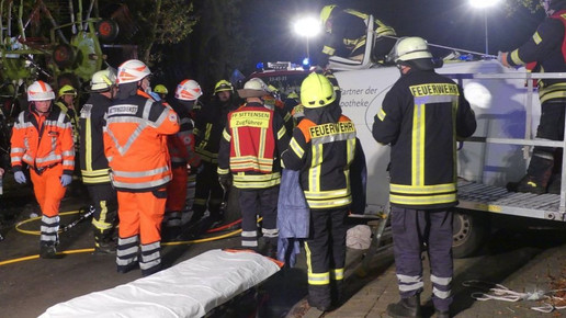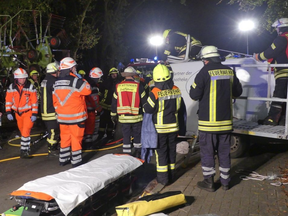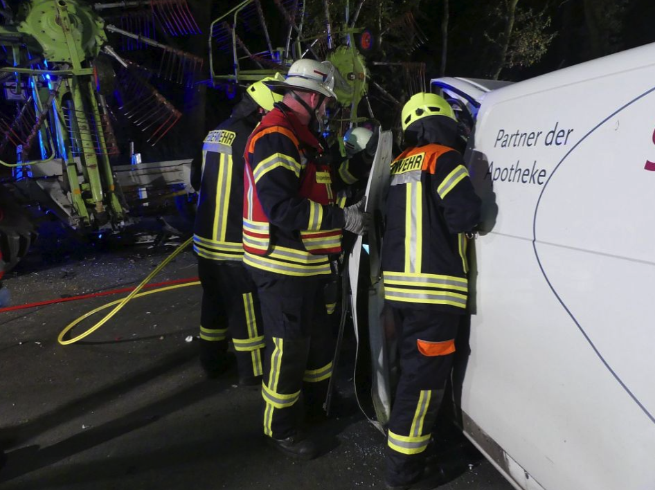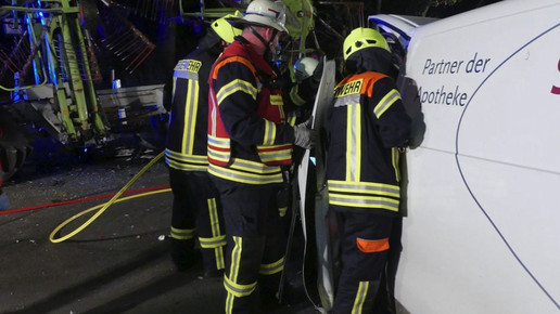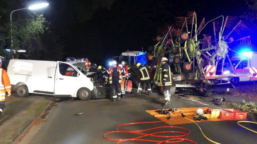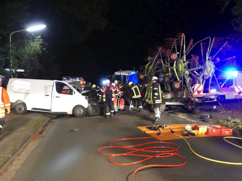 Der Fahrer des Transporters wurde wegen des Aufpralls in seinem Transporter eingeklemmt und erlitt schwere Verletzungen. Die Feuerwehr musste die Fahrzeugseiten sowie die Windschutzscheibe öffnen, um den Mann aus dem Lieferfahrzeug zu befreien. Nach einer halben Stunde habe der Verletzte befreit werden können und wurde in eine Klinik gebracht. Der Fahrer des Traktors blieb unverletzt.