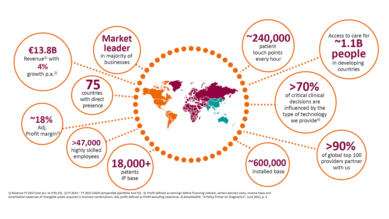 Siemens Healthineers kam im vergangenen Geschäftsjahr (per Ende September) auf einen Umsatz von 13,8 Milliarden Euro und ein operatives Ergebnis von knapp 2,5 Milliarden Euro. Mit einer Marge von 18,1 Prozent gehört die Gesellschaft zu den profitabelsten Geschäften von Siemens. Mit dem Börsengang verfolgt Siemens-Chef Joe Kaeser die Strategie eines sogenannten Flottenverbundes, der die einzelnen Einheiten selbstständiger und damit agiler und wettbewerbsfähiger machen soll. Der Industriekonzern will dabei Mehrheitsaktionär bleiben.