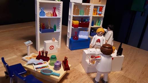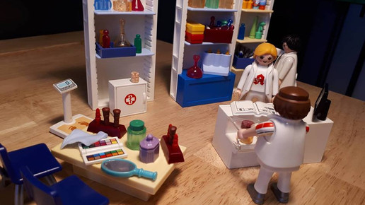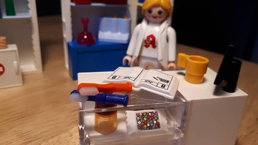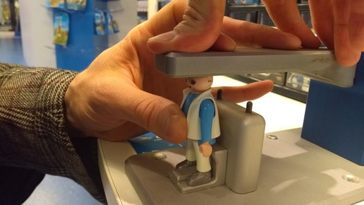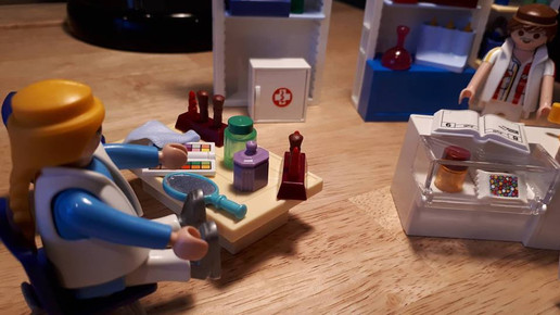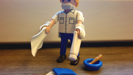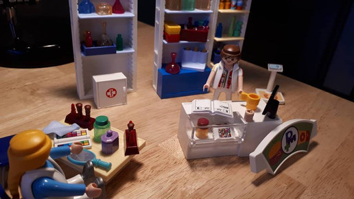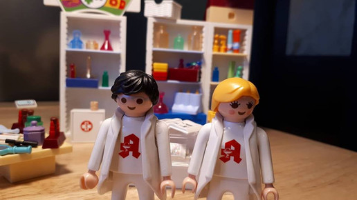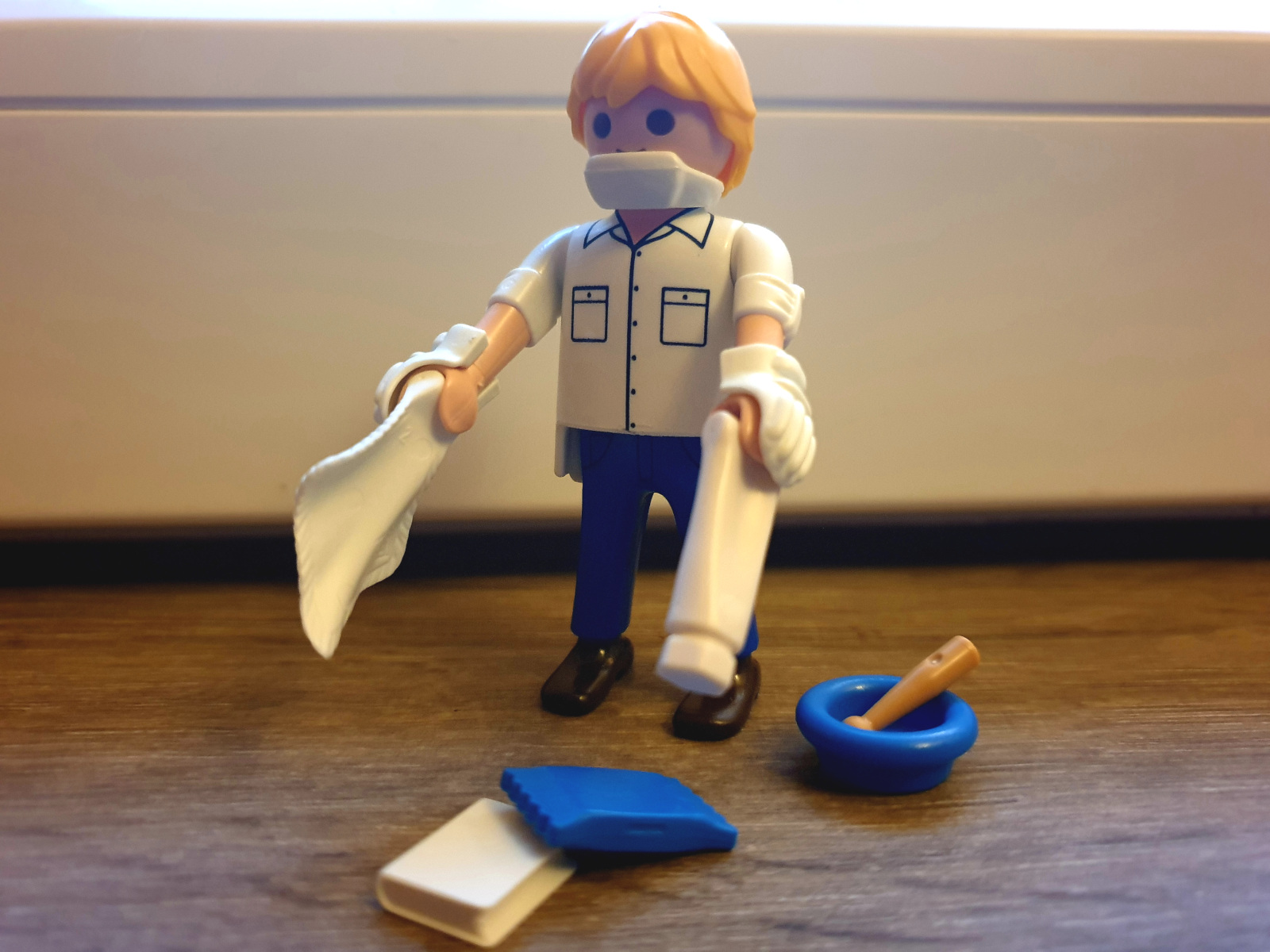 Die neue Sonderfigur ist sichtlich von der Pandemie geprägt: Sie kommt mit Mundschutz und Desinfektionstuch daher. „Natürlich trägt er eine Nase-Mund-Maske, um seine Mitmenschen besser vor einer Infektion zu schützen“, erklärt Playmobil. Optisch gleicht der Apotheker eher einer Reinigungskraft. Naja, immerhin werden ihm außerdem Salbentube, Buch und Mörser zur Seite gestellt. Obwohl die Figur lange nach Ärzt:innen Einzug ins Sortiment hält, wird die Bedeutung des Berufes in der Beschreibung der Figur herausgestellt: „Mit seinem Fachwissen und seiner Erfahrung gehört der Apotheker zur Stütze der Gesellschaft.“