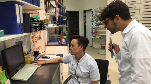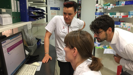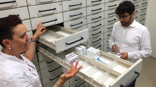 Als Neufeldt vor einigen Tagen von einer kleinen Anfrage der SPD-Fraktion im Landtag zum Thema Medikamentenengpass erfuhr, „packte“ es sie. Die Apothekerin schrieb die sämtliche Darmstädter Landtagsabgeordnete an und lud diese in ihren Betrieb ein. Antworten bekam sie nicht – außer von Kaffenberger, der sich gleich mit einigen Terminvorschlägen meldete. Wie vereinbart, stattete der SPD-Mann dann auch tatsächlich der Apotheke am Klinikum einen Besuch ab.