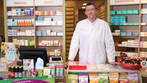 Kaminski kommt aus Stavenhagen. Seit 1993 hat seine Mutter die Eichen-Apotheke betrieben, 2007 hat er sie mit gerade einmal 27 Jahren übernommen. „Ich habe nach dem Studium ein halbes Jahr Einarbeitungszeit gehabt und bin danach direkt neuer Inhaber geworden“, erzählt er. Und seitdem hat er sich gut behauptet, denn trotz der geringen Größe des Ortes hat Stavenhagen drei Apotheken. „Das ist natürlich schwierig“, sagt er. „Aber im Moment läuft es für uns relativ stabil, sodass ich mich nicht beschweren will. Das wäre meckern auf hohem Niveau.“