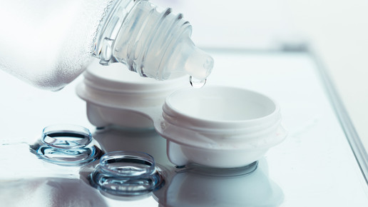 Über Nacht kommen die sogenannten Haftschalen in einen entsprechenden Behälter mit frischer Desinfektionslösung. Morgens nachdem die Linsen wieder in die Augen eingesetzt wurden, wird das kleine Doppelkammer-Gefäß ausgespült und an der Luft getrocknet. Diesen Arbeitsschritt vernachlässigen Kontaklinsenträger:innen oftmals. Alle drei bis sechs Monate ist außerdem ein Wechsel des Behälters anzuraten.