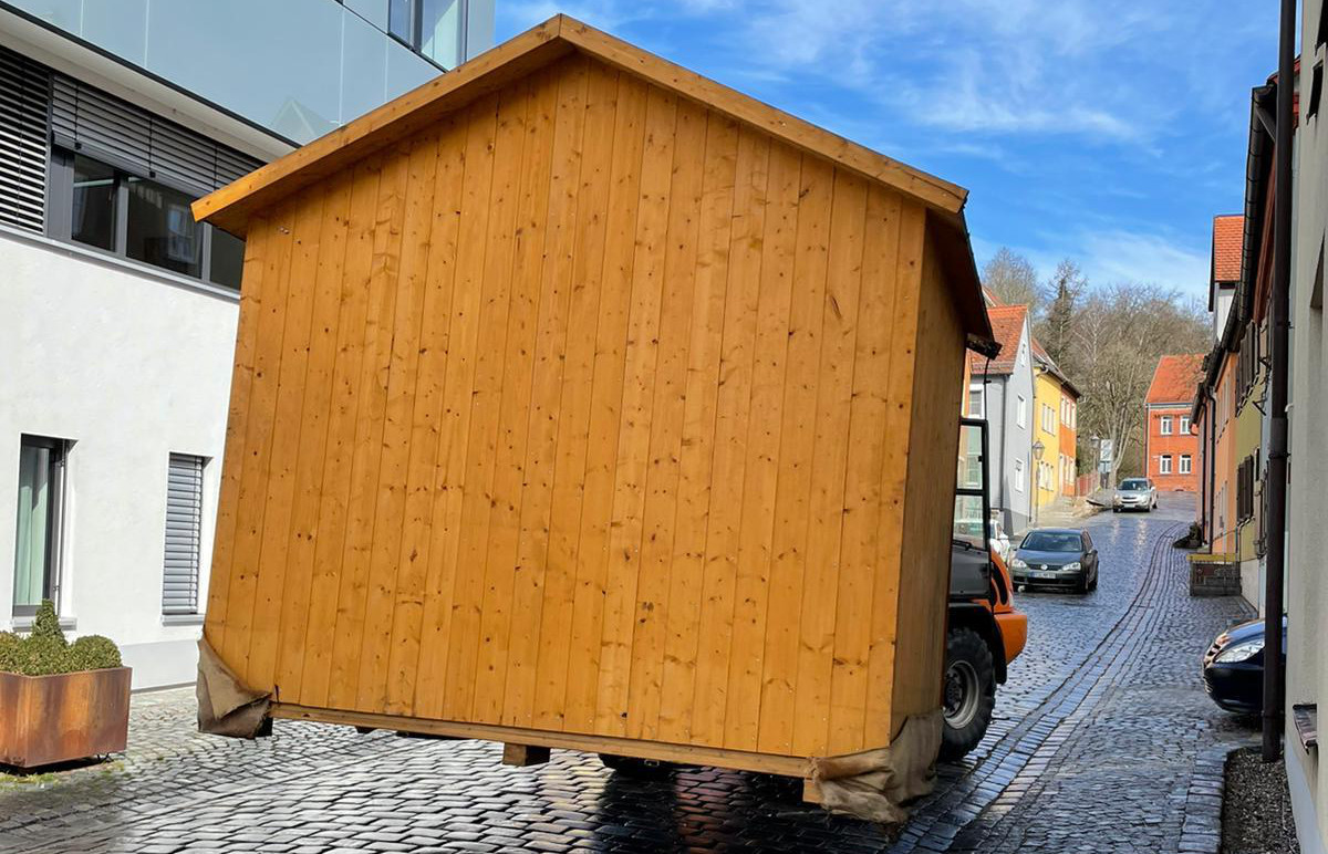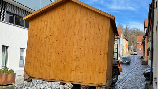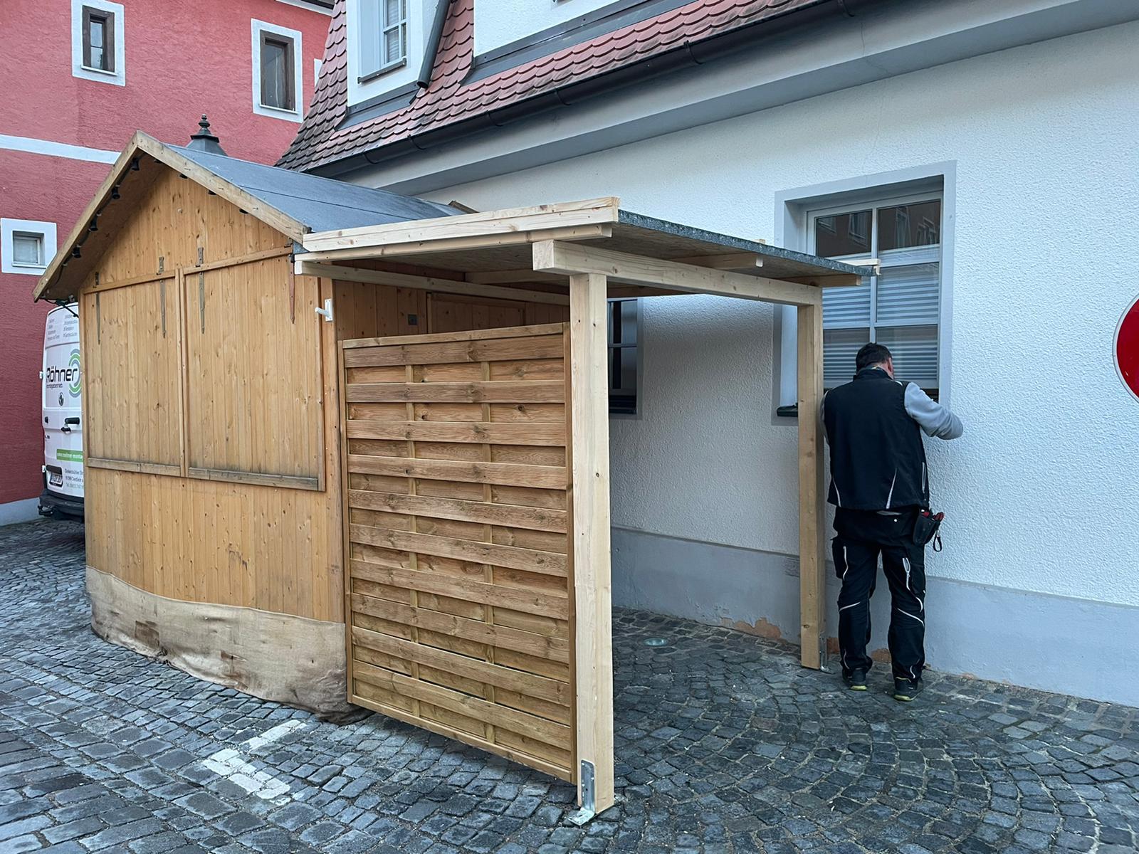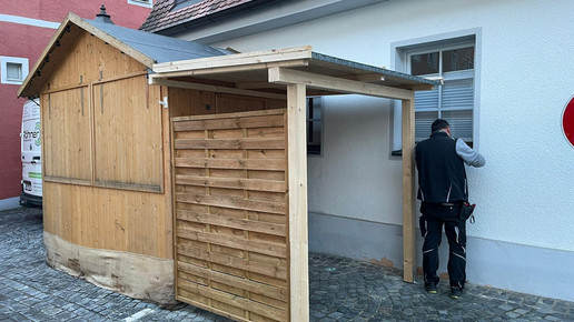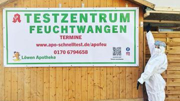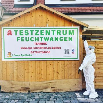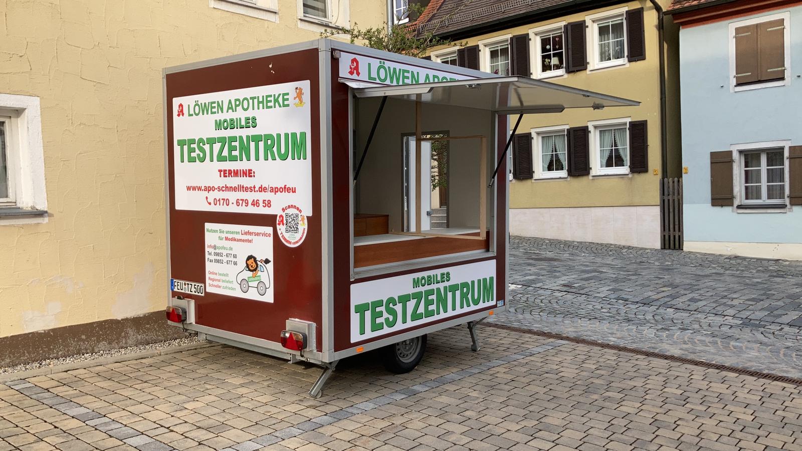 Die Löwen Apotheke in Feuchtwangen bittet ihre Kunden für Schnelltests in eine Weihnachtsmarktbude. Gemeinsam mit der Stadt sei das Häuschen aus Holz organisiert worden, sagt Sylwia Spaniel. Die Pharmazeutin ist für das Testen verantwortlich. Seit Mitte März bietet die Apotheke den Service an. Die Bude musste erst etwas umgebaut werden, bevor es mit den Tests losgehen konnte.