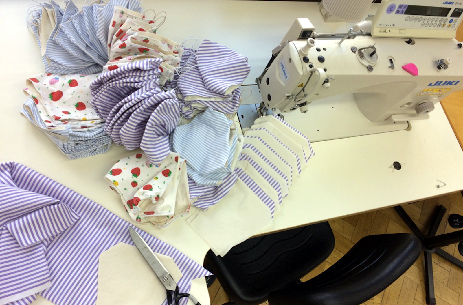 Mundschutze in größeren Mengen lassen sich so kaum produzieren. Die heimische Herstellung reicht für das engere Umfeld wie Familie und Freunde. Um auch Einrichtungen und Angestellte anderer systemrelevanter Berufe versorgen zu können, haben sich viele Theater dazu entschlossen, die vorstellungsfreie Zeit zu nutzen, um auf den Werkstätten Mundschutz in größerer Stückzahl zu produzieren. Die Damen- und Herrenschneiderein sind optimal ausgestattet, sodass sich in kurzer Zeit relativ große Stückzahlen produzieren lassen.