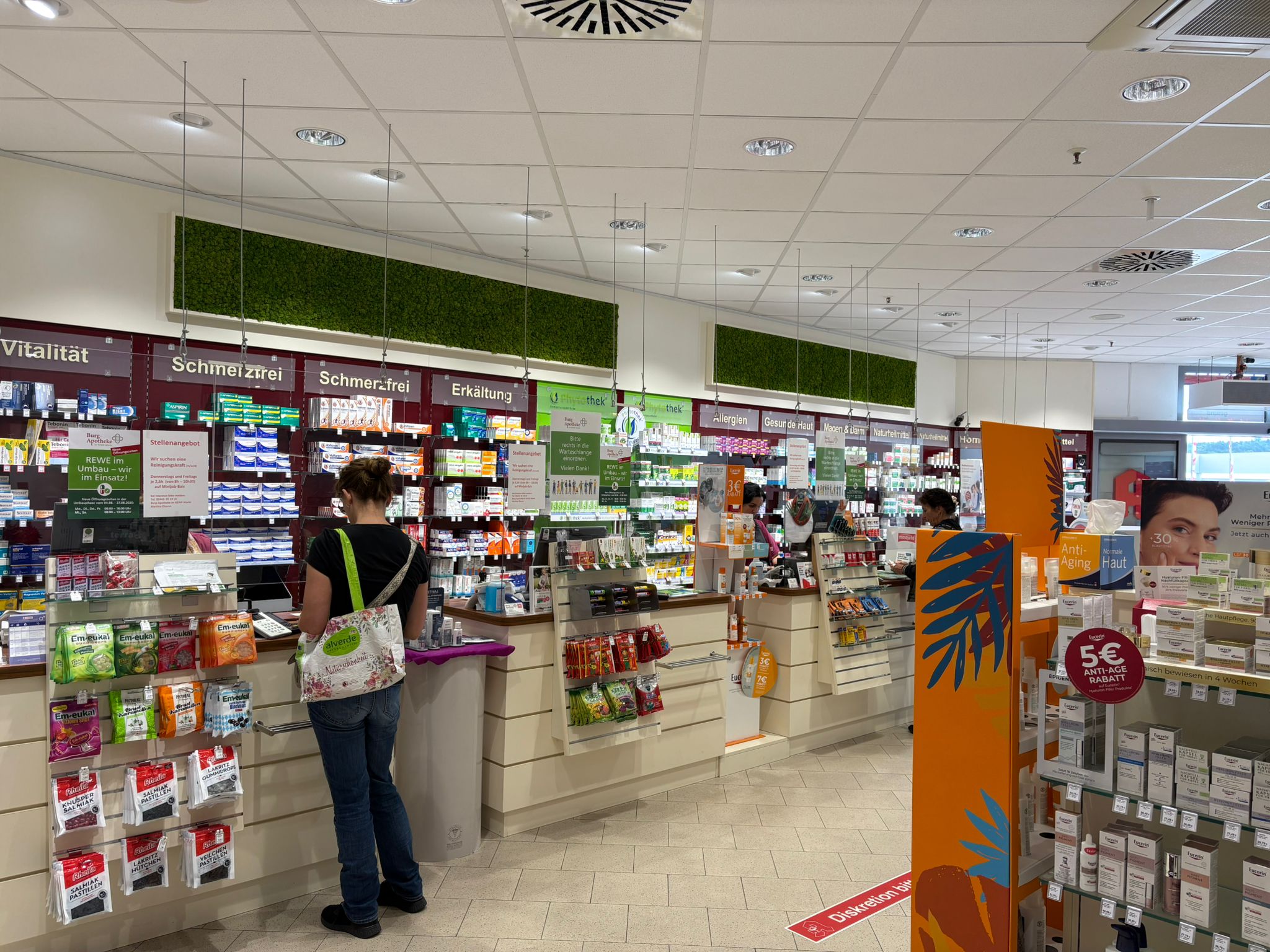 Kundinnen und Kunden in Mechernich-Kommern in Nordrhein-Westfalen müssen in den nächsten Wochen für ihren Wocheneinkauf einen anderen Supermarkt aufsuchen: Das Rewe-Center Grass wird renoviert. Für ihre Medikamente müssen sich die Kundinnen und Kunden aber nicht nach Alternativen umschauen: Die Burg-Apotheke im Markt bleibt auch während des Umbaus geöffnet – allerdings mit kürzeren Öffnungszeiten.