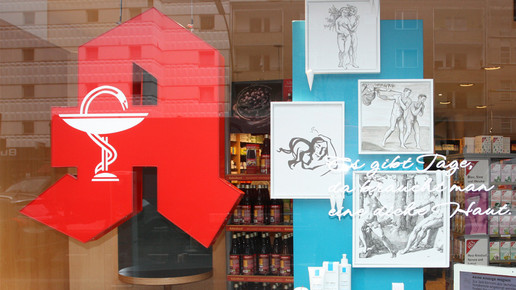 Ein Schaufenster ist immer die Tür zur Seele eines Geschäfts. Hier zeigt sich, ob der Betreiber Phantasie, Humor oder Sachlichkeit bevorzugt. Wer weiter geht, drückt aus, dass nichts ihn festhält. Nur wer stehen bleibt, wird auch eintreten und kaufen. Heike Belgert aus Berlin weiß, wie man Schaufenster so dekoriert, dass die Menschen gern davor innehalten. Sie betreibt die Werbeagentur Art Window, gestaltet seit mehr als einem Vierteljahrhundert Schaufenster von Geschäften, auch Apotheken sind darunter.