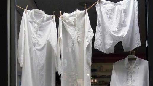 Auch die Kunden von morgen werden von ihr bei Laune gehalten, besonders gern zur Weihnachtszeit. Dann werden kleine Spielzeugsammlungen ausgestellt. Die Sammler freuen sich stets sehr. „Die Leute sehen ihre Sammlung ja selten ausgestellt und sind begeistert, wenn sie sie im Schaufenster sehen. Außerdem möchen sie gern andere Menschen an ihren Stücken teilhaben lassen.“ Besonders gern erinnert sie sich an eine Dekoration mit antiken Spazierstöcken. „Die waren wunderschön und richtig wertvoll, mit Silberköpfen.“ Die antike Unterwäsche nimmt diesmal ausnahmsweise zwei Schaufenster ein: „Weil die Teile so groß sind.“ Die Sammlerin hat, so erzählt Buhlmann, besitze die guten Stücke kistenweise. Und auch alte Bügeleisen.