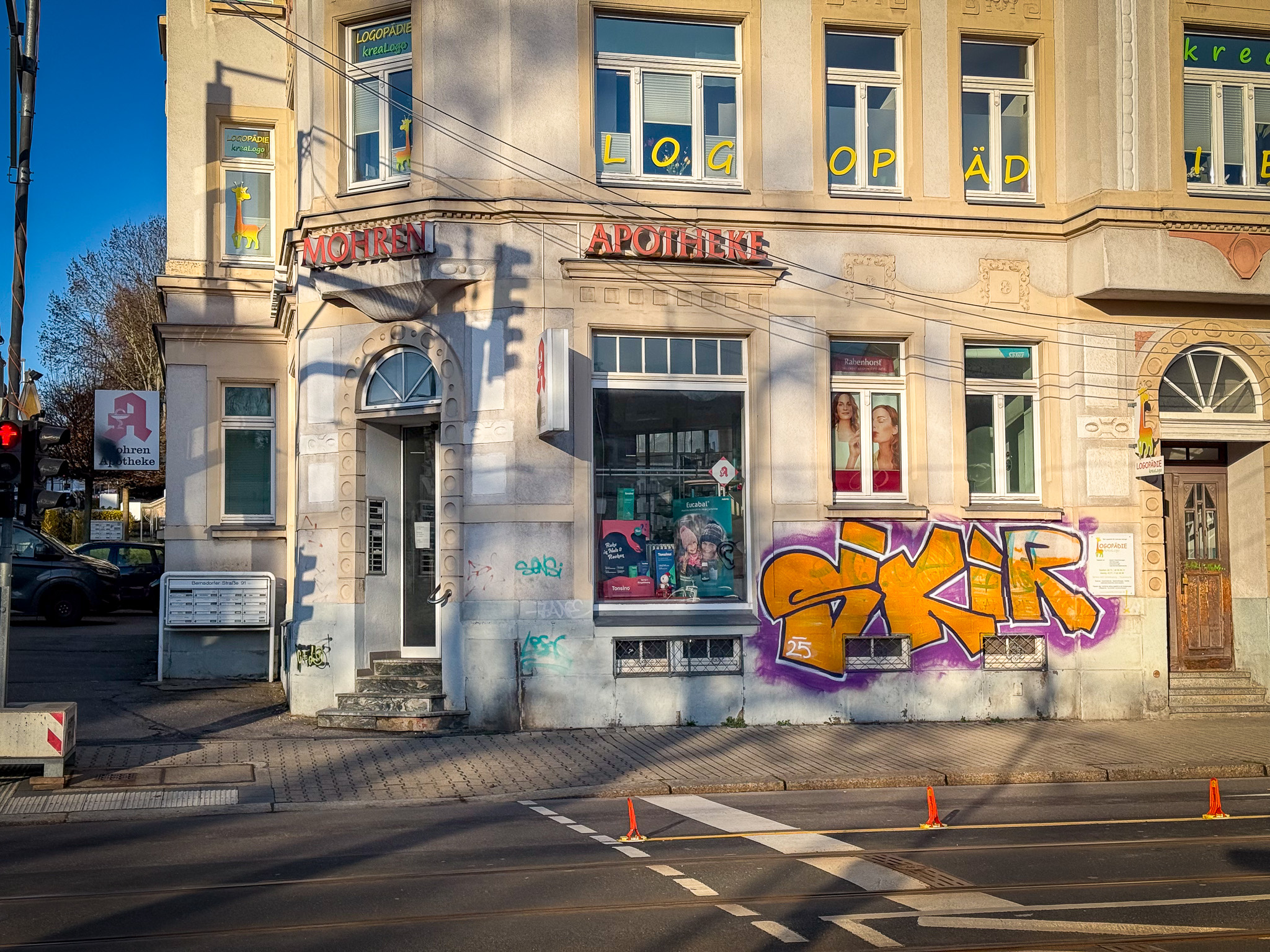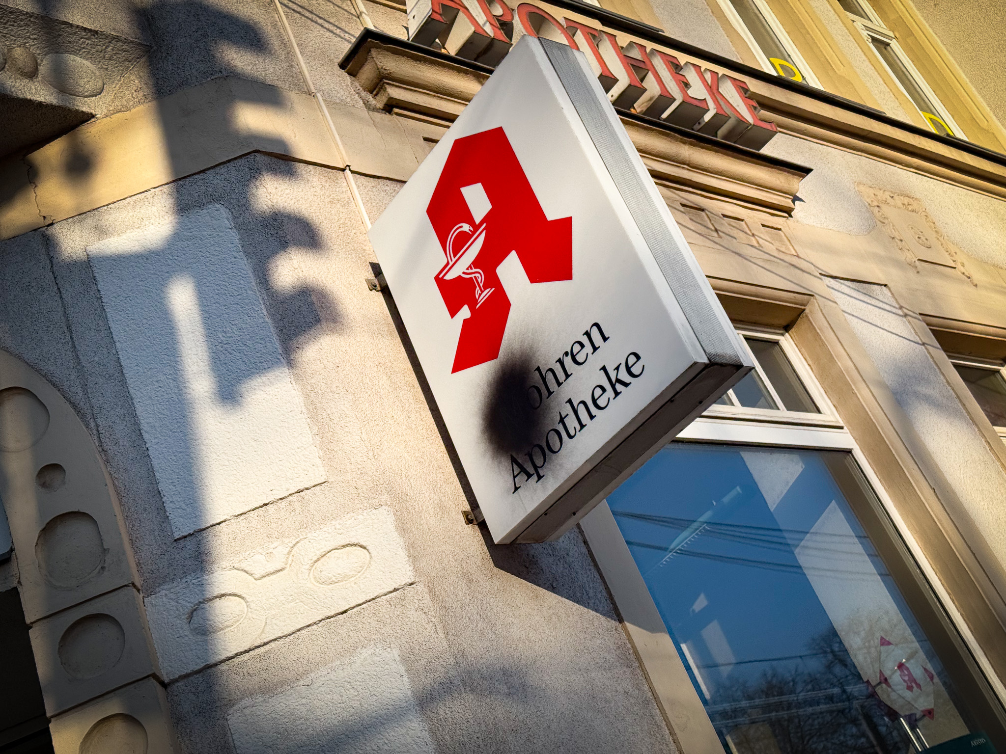 In Chemnitz wurde eine Apotheke verunstaltet. Unbekannte übersprühten das Logo und entfernten den Buchstaben „M“ aus der Leuchtreklame über der Tür. So wurde aus Mohren-Apotheke kurzerhand Ohren-Apotheke. Linksradikale hätten sich bereits zur Tat bekannt, heißt es laut einer Internetplattform.