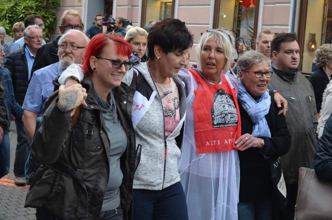 Heike Benedetti, Nebenklägerin im Prozess, erzählte im Gerichtssaal ein Erlebnis und alle hielten inne. „Wir hatten am Mittwoch eine Andacht für Betroffene. In der letzten Reihe saß ein älterer Herr. Wir haben ihn dann nach vorne geholt. Er tat mir sehr leid, er war sehr betroffen. Es war der Vater von Herrn S., in sich versunken. Ich bin danach auf ihn zugegangen. Er gab mir die Hand, ich habe mich bedankt, dass er da war. Er hat sich wiederum bedankt, sagte, dass es ihm leid täte, was uns widerfahren ist.”