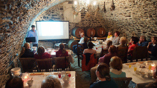 Da zu den Vorträgen nicht alle Interessierten im Apothekenkeller Platz fanden, wurde sogar drei weitere Seminartermine organisiert. Der Gewölbekeller stammt aus dem 16. Jahrhundert und ist Teil eines verzweigten Systems. „Früher waren alle Keller der Gemeinde miteinander verbunden und führten zur Burg“, erklärt Kram. Im vergangenen Jahr wurde das historische Gewölbe aufwendig restauriert. Überhaupt stellen Kram und sein Team den historischen Charakter der Marien-Apotheke heraus, ohne dabei den Blick auf die Moderne zu verlieren.