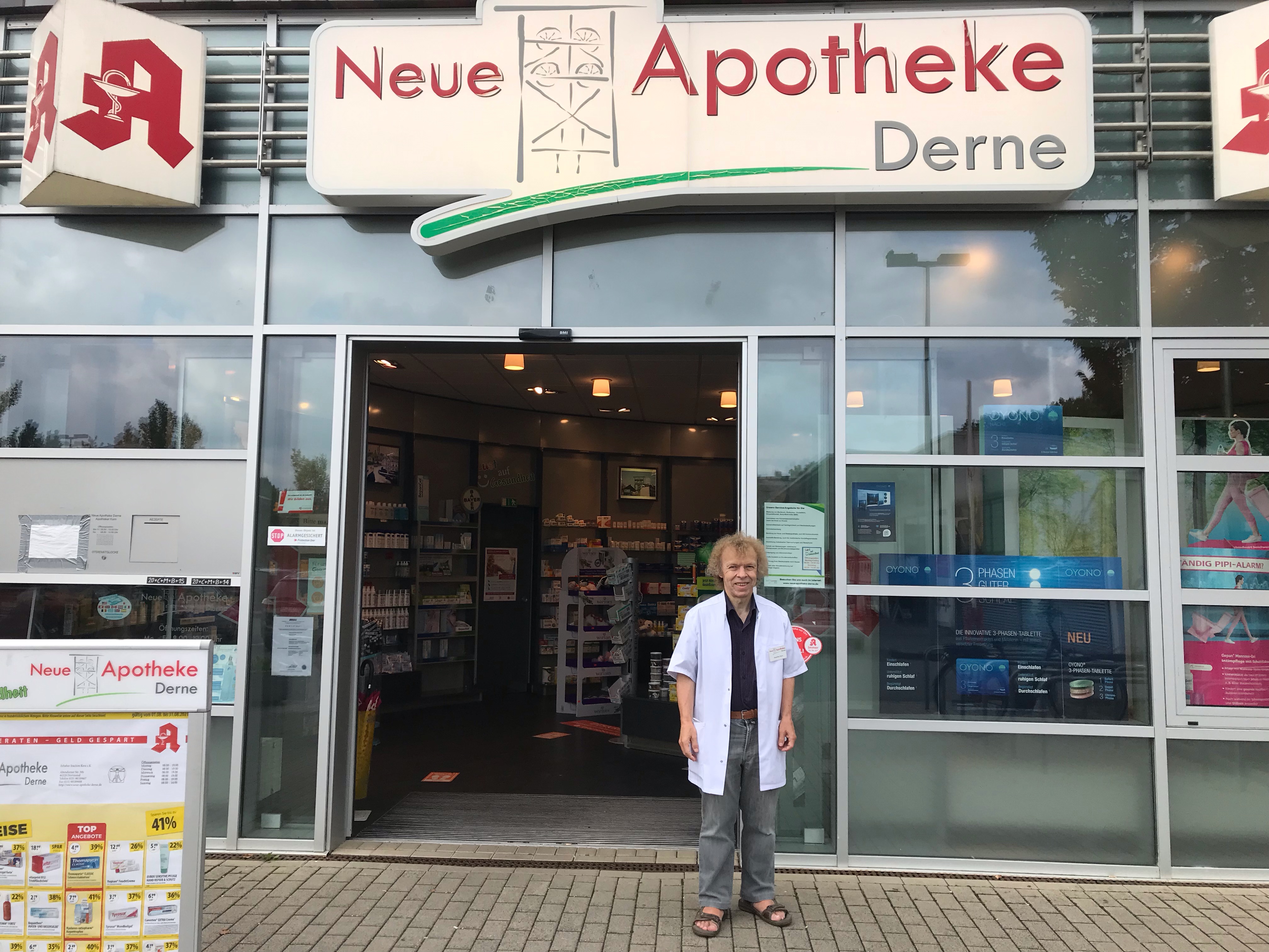 Kern blickt auf eine lange und ereignisreiche Laufbahn als Apotheker zurück. Geboren im Umreis von Dortmund, erhielt er seine Approbation im Jahre 1980. Die Neue Apotheke Derne, die sich in einem Einkaufszentrum befindet, gründete er gemeinsam mit einem ehemaligen Kollegen. „Als das Einkaufszentrum erweitert werden sollte, fragte mich mein Kollege, ob ich mit ihm gemeinsam dort eine neue Apotheke eröffnen wolle,“ erinnert sich Kern.
