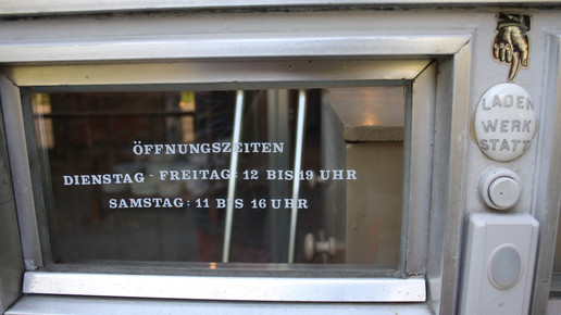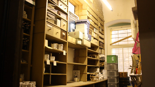 Im Showroom geht wenig zu Bruch, obwohl man die Ware hier anfassen darf. Die Kunden hier huschen nicht eben mal für fünf Minuten in die alte Apotheke. Sie bleiben gerne länger. Und sie gehen höchst vorsichtig mit der Ware um. Ein bisschen ist es wie im Museum, nur dass die guten Stücke fast alle zu kaufen sind. Im Untergeschoss werkelt derweil Herr Kühn.