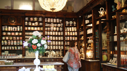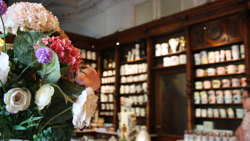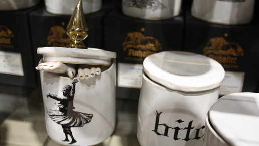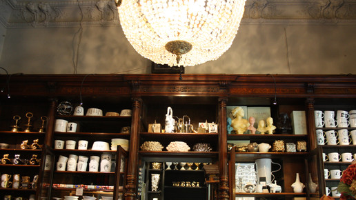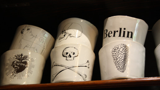 Berlin-Kreuzberg ist nicht gerade als Mekka der Eleganz bekannt. Da liegen gebrauchte Sofas en masse auf den Gehwegen und fliegt schon mal ein gebrauchter Fernseher aus dem Fenster. Umso erstaunlicher ist dieser Ort: In der alten Anhalter-Apotheker wird feinste Keramikware her- und ausgestellt. Tassen mit vergoldeten Henkeln! Hasen mit goldenen Ohren! Besuch in einer anderen Welt.