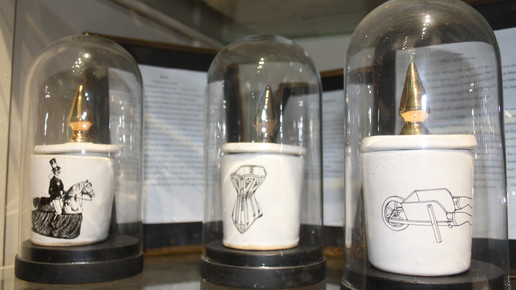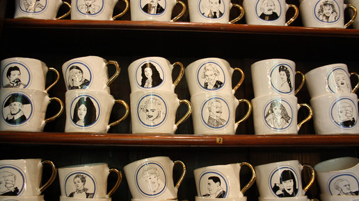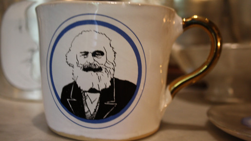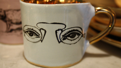 Für einen schnellen Besuch ist ihr Showroom nicht geeignet. Denn kaum hat man eine schöne Tasse, vielleicht die mit dem Konterfei von Albert Einstein, Elvis Presley, Richard Wagner oder Karl Marx entdeckt, wartet im nächsten Regal schon die nächste Überraschung. Kleine, pastellfarbene Espressotässchen! Wie aus der Puppenstube. Die meisten haben einen vergoldeten Henkel, es ist eines der Markenzeichen von Kühn Keramik.
