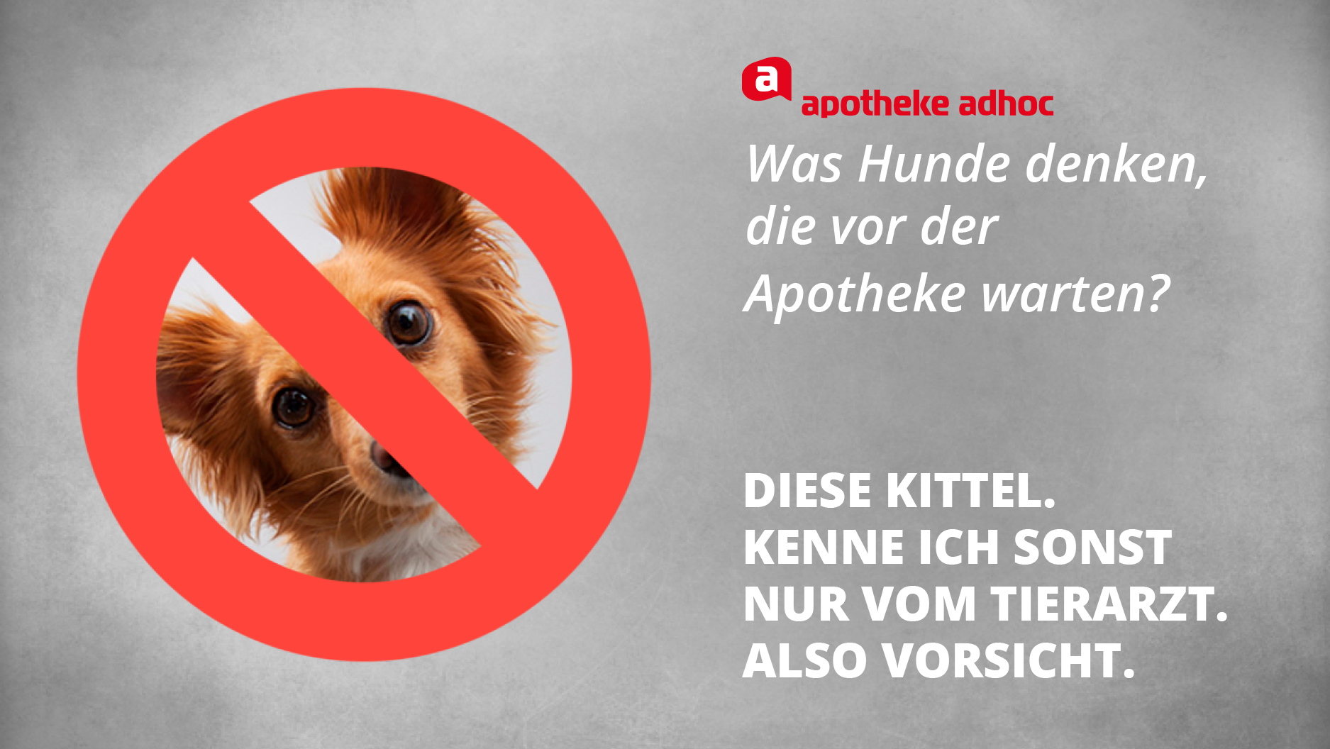 Ein angebundener Hund vor der Tür ist immer ein rührender Anblick. Sein angstvoller Blick verrät, dass er sich ernsthaft Sorgen macht, ob Frauchen oder Herrchen auch diesmal wiederkommt. Und was geht dem besten Freund des Menschen sonst so durch den Kopf, wenn er vor der Apotheke wartet?