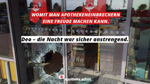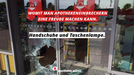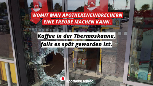 Egal, wie gut sich Apotheken absichern: Ganz vor Einbrechern schützen kann man sich nicht. Ein Kollege in den Staaten wurde um 9000 Pillen erleichtert, und ein Sandwich. Offenbar hatte der Einbrecher Hunger. Hier ein paar Tipps, wie Sie Ihrem nächsten nächtlichen Besucher den Aufenthalt angenehmer oder aufregender gestalten können.