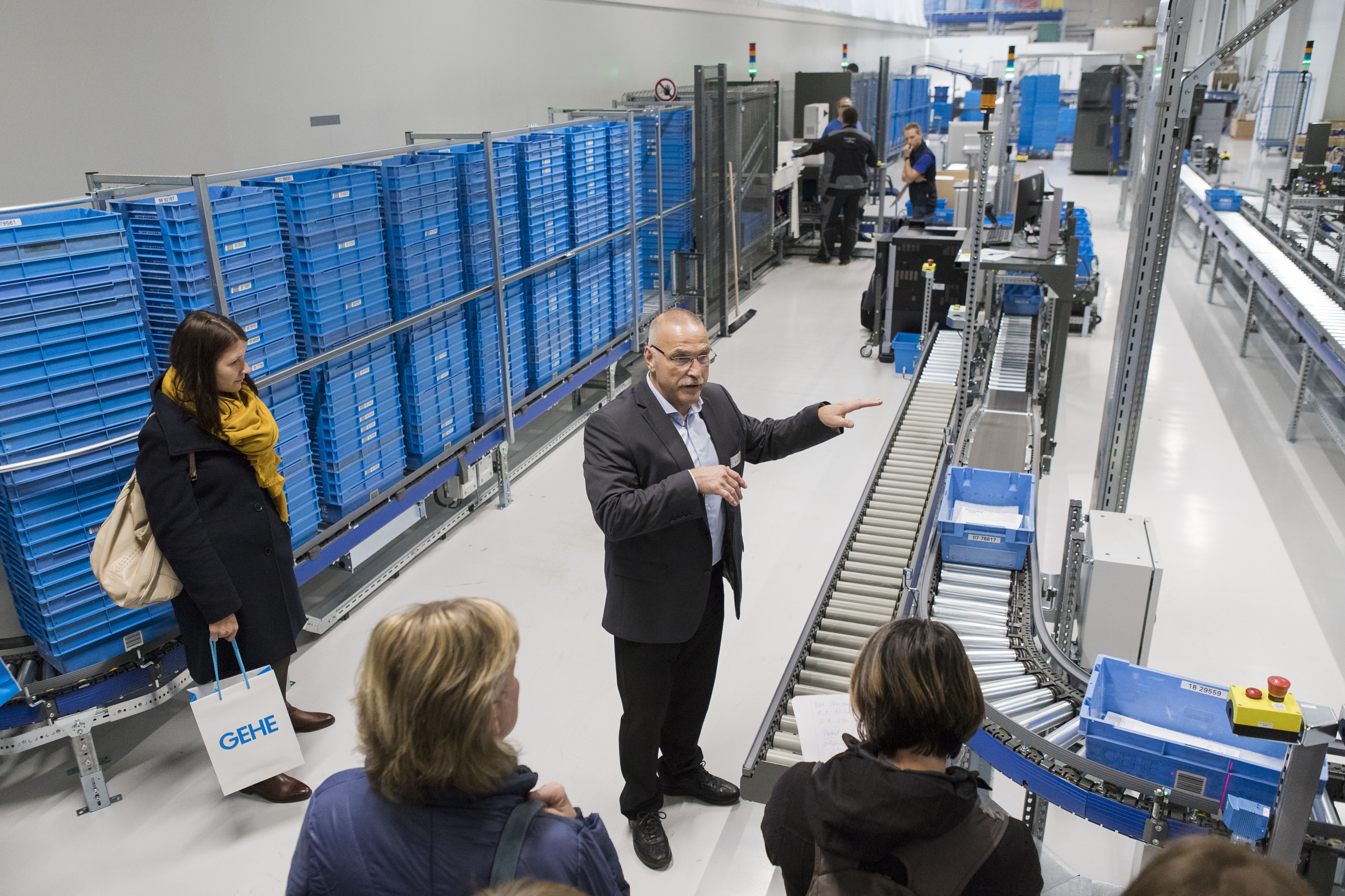 Auf einer Fläche von rund 6000 Quadratmetern lagern etwa 100.000 Arzneimittel. Blaue Kisten gingen auf eine ein Kilometer lange Reise, heißt es in dem Bericht. „Wie Modelleisenbahn auf 6000 Quadratmetern“, wird das Lager beschrieben. Leiterin Anke Groth erklärt die Veränderungen in den Abläufen. Sie ist seit 1990 für Gehe tätig. Seitdem habe sich alles geändert. „Das einzige was gleichgeblieben ist: Wir haben die Apotheken, die wir beliefern.“