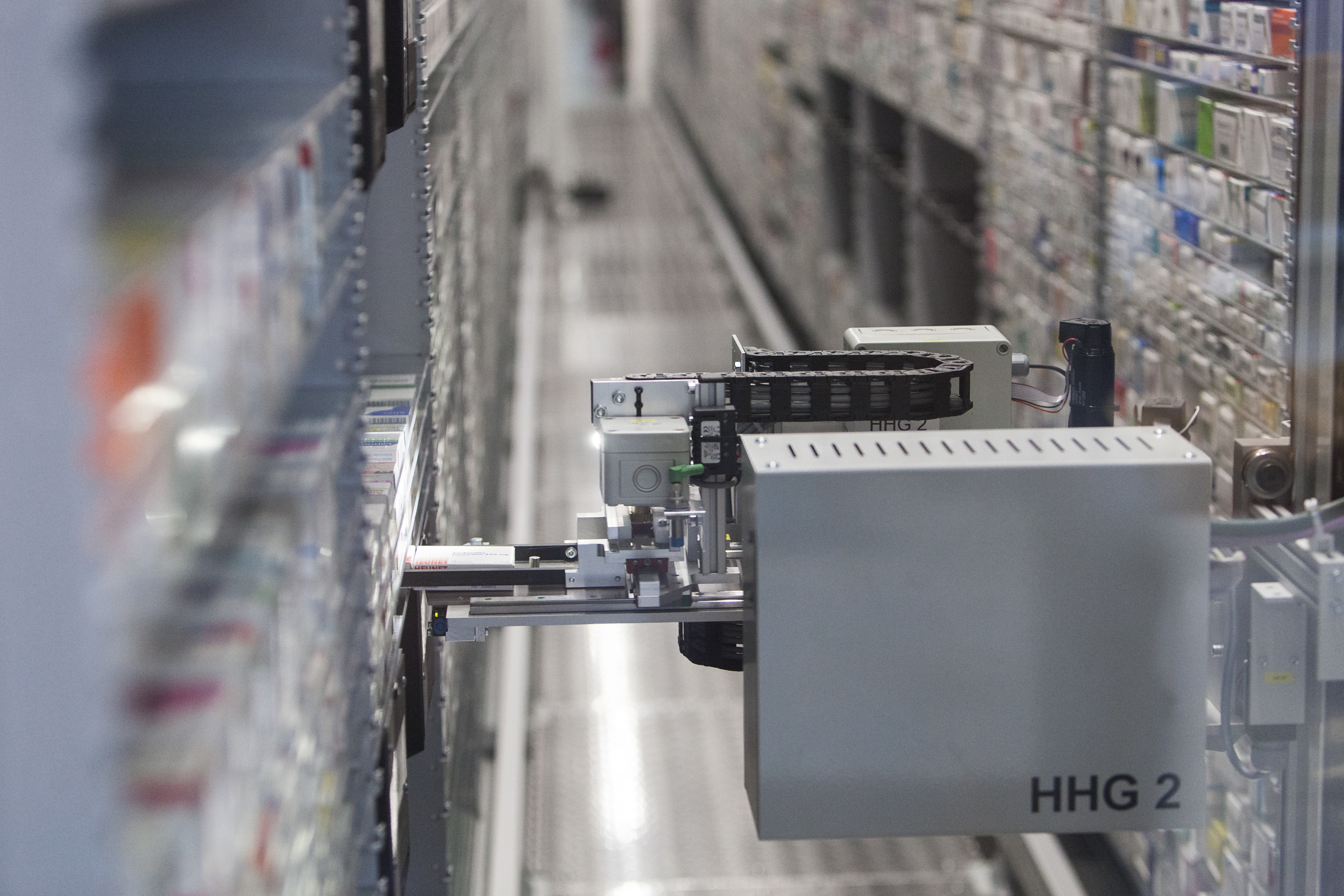 Herzstück der Kommissionieranlage sei der Automat für die Langsamdreher, also Arzneimittel, die nicht ständig nachgefragt werden. Der Automat sei wie eine Bibliothek. Geschäftsführer Michael Uhlmann erklärt: Alle Medikamente landeten letztlich in einer Kiste. „Wir haben einen Durchlauf von 1200 Behältern in der Stunde.“ Dadurch könne eine Apothekenbestellung innerhalb von 20 Minuten abgearbeitet werden.