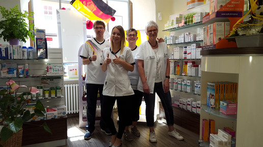 Nach dem Studium fing sie sofort als Stellvertreterin in der Löwen-Apotheke in Kölleda an. „Meine Chefin ist Mitte 30, ich bin 29, wir rocken die Apotheke!“ Kölleda hat rund 6000 Einwohner und zwei Apotheken. „Es ist hier wie im Dorf. Jeder kennt jeden, man quatscht mit Kunden auch mal über Privates.“