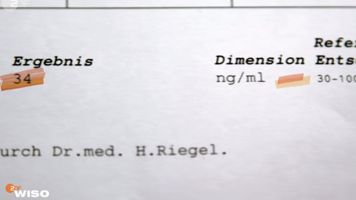 Dr. Ulrike Lemberg ist Fachärztin für Laboratoriumsmedizin und gibt Entwarnung – auch wenn der Wert sich im unteren Grenzbereich befindet. Im Vergleich zum Großteil der Bevölkerung weise die Reporterin zu dieser Jahreszeit einen sehr guten Wert auf. Ein Mangel bestehe erst ab einem Marker von 12 ng/ml.