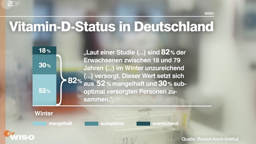 Laut Robert-Koch-Institut sind im Winter 82 Prozent der Deutschen zwischen 18 und 79 Jahren unzureichend mit Vitamin D versorgt. 52 Prozent sind mangelhaft und 30 Prozent nur suboptimal versorgt – 18 Prozent der Bevölkerung ausreichend. Im Sommer verschiebt sich der Anteil, in der sonnigen Jahreszeit ist der Status bei zwei von drei Deutschen ausreichend.