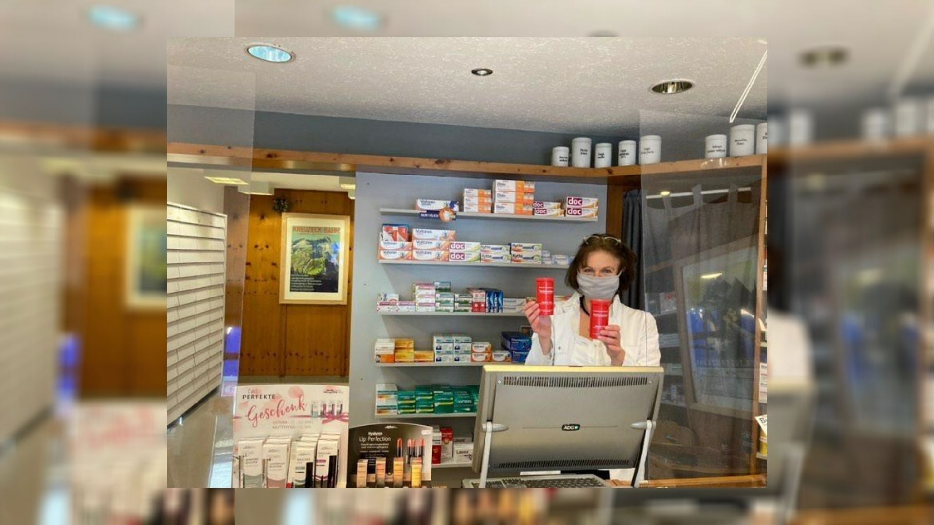 Grade im Moment ist es an der Zugspitze etwas ruhiger als sonst: „Es sind weniger Menschen erkältet, außerdem fehlen die Touristen – da kann man die Zeit für solche Aktionen super nutzen“, findet sie. Mittlerweile hat die Apotheke die Aktion aktiv beworben und auch das Schaufenster entsprechend dekoriert. Wenn die von der Gemeinde zur Verfügung gestellten Dosen zu Neige gehen, kann die Apotheke beim Roten Kreuz noch Nachschub ordern, um weitere Menschen zu versorgen.