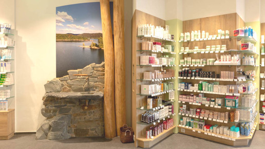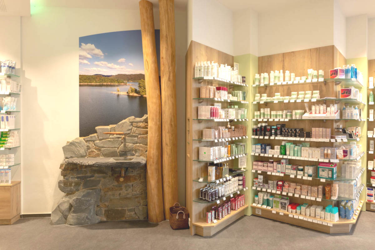 In die Optik hat Franke viel Liebe gesteckt: „Drei dezente LED-Streifen in der Decke weisen den Weg zu den HV-Tischen. Der Wasserspender für Kunden wurde aus heimischem Bruchstein gemauert. Im Hintergrund ist ein Bild des nahen Biggesees eingelassen“, erzählt er. „Die Sockel der HV-Tische sind in Stein gefasst. In Kombination mit heller Eiche ergibt sich eine natürliche Wohlfühlatmosphäre.“ Auch das Personal kann sich über neue Annehmlichkeiten freuen. „Wir haben jetzt ein großes Backoffice mit Arbeitsplätzen für Apotheker, PTA und PKA.“ Genug Platz für Verstärkung: „Insgesamt arbeiten 25 Menschen im Verbund. Aber wir suchen weitere Mitarbeiter.“