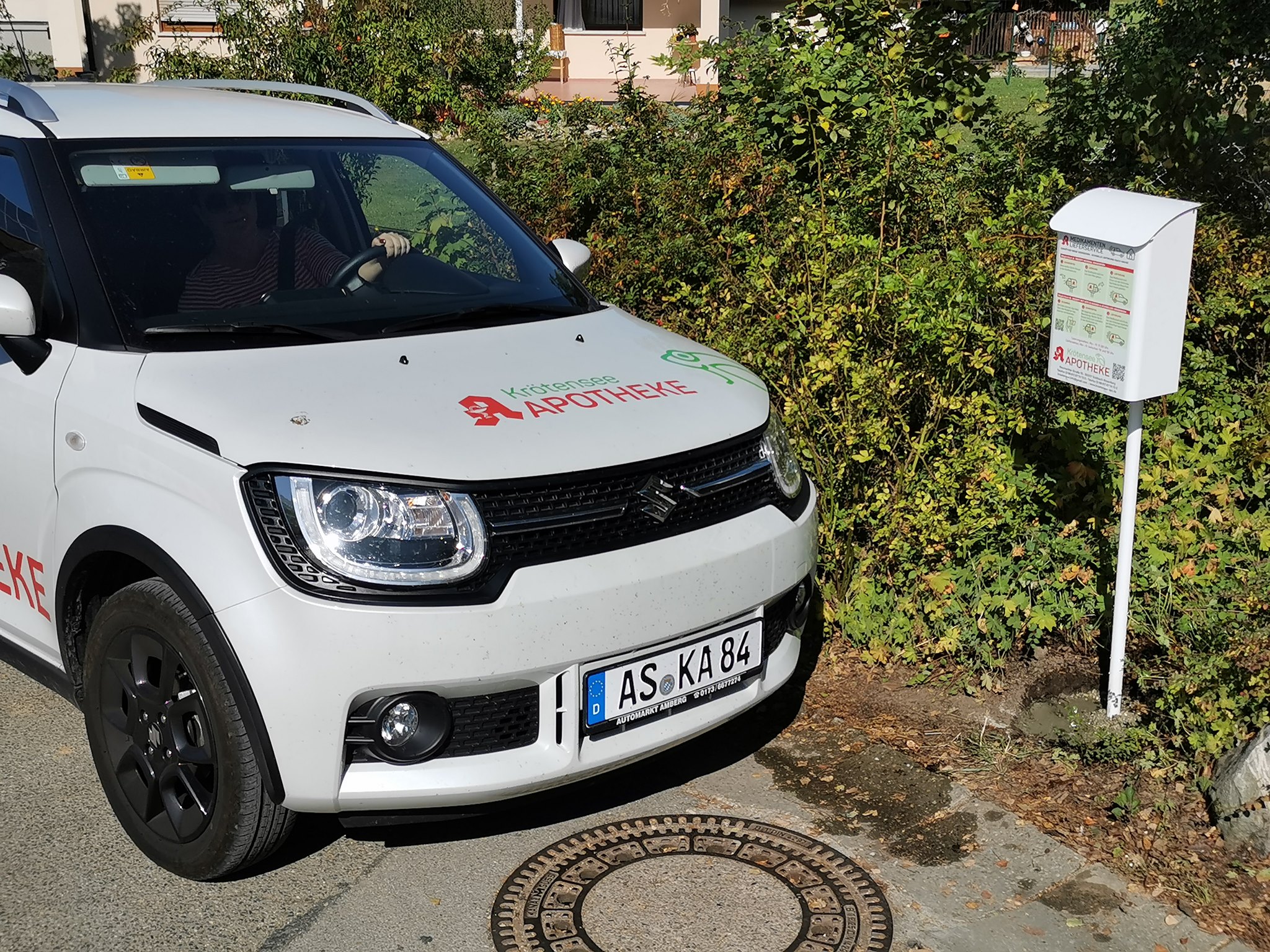 Als die Rathaus-Apotheke im rund zehn Kilometer entfernten Neukirchen im vergangenen Herbst schloss, entschied sich Holtschulze für eine Rezeptbox im Nachbarort. Im vergangenen September stellte sie den Briefkasten auf „dem freien Feld“ auf. Sie verfügt über eine Versandhandelserlaubnis und erhielt die Genehmigung vom Landratsamt. „Es läuft alles rechtskonform“, so Holtschulze. Apotheken dürfen nach einem Urteil des Bundesverwaltungsgerichts (BVerwG) Rezeptsammelboxen einrichten und mit ihrem eigenen Botendienst beliefern. Der Versandhandel mit Arzneimitteln umfasse auch das Einsammeln von Rezepten und Botenauslieferungen im Einzugsbereich der Präsenzapotheke.