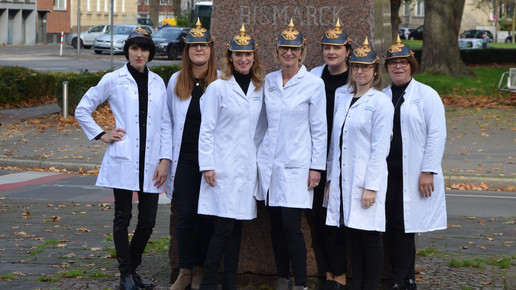 Die Jubiläumsfeier sollte etwas Besonderes werden. Entsprechend früh begannen die Planungen: „Man fängt schon drei bis vier Monate vorher an, sich Gedanken zu machen“, verrät Noell. Einladungskarten wurden verteilt, das Schaufenster aufgehübscht und ein Glücksrad aufgestellt. Das Highlight war jedoch modischer Natur: „Wir haben uns verkleidet und standen mit Pickelhauben in der Offizin“, spielten die Mitarbeiter auf den Namen der Bismarck-Apotheke an. Nicht jedem Kunden erschloss sich das sofort: „Manche dachten, das ist unsere Halloween-Verkleidung“, lacht Noell.