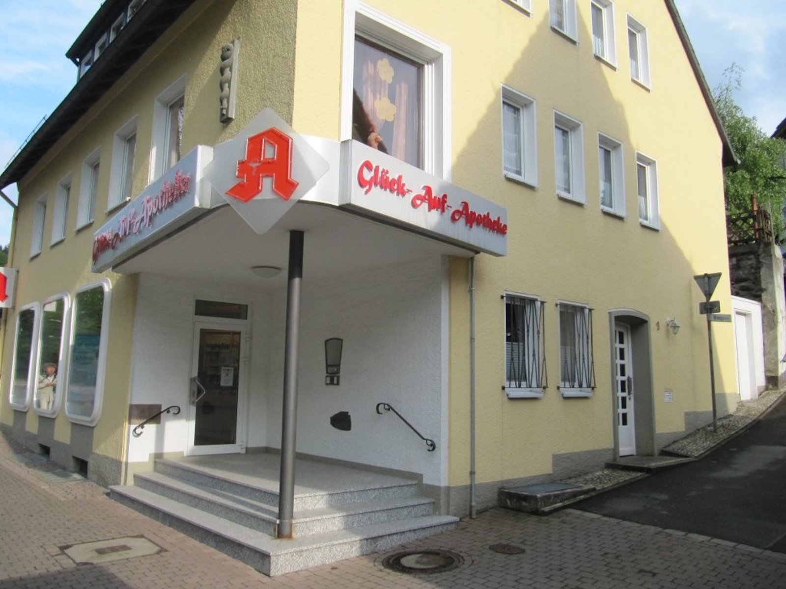 Das Gebäude selbst erzählt seine ganz eigene Geschichte. Nach dem Abriss der damaligen Brauerei ließ die Familie Knäpper 1956 die heutige Apotheke bauen. Das alte Brauhaus verfiel, nachdem es rund 300 Jahre lang der Witterung im Harz standgehalten hatte. An seiner Stelle wurde nun die Glück-auf-Apotheke errichtet. Das Gebäude steht am Hang, dadurch ist die Temperatur stets kühl, selbst heute hat der Apotheker lange keine Klimaanlage gebraucht.