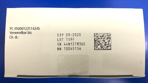 Stimmt die Theorie, hat Nolten dem Großhandel auch den Preis der großen Packung bezahlt – unwissentlich von beiden Seiten, denn auch der Großhandel nutzt womöglich das gleiche System wie Nolten: QR-Code scannen und ab ins Warenlager mit der Packung. Im aktuellen Fall geht es um die Charge TV9F mit dem Verfallsdatum 09/2020.