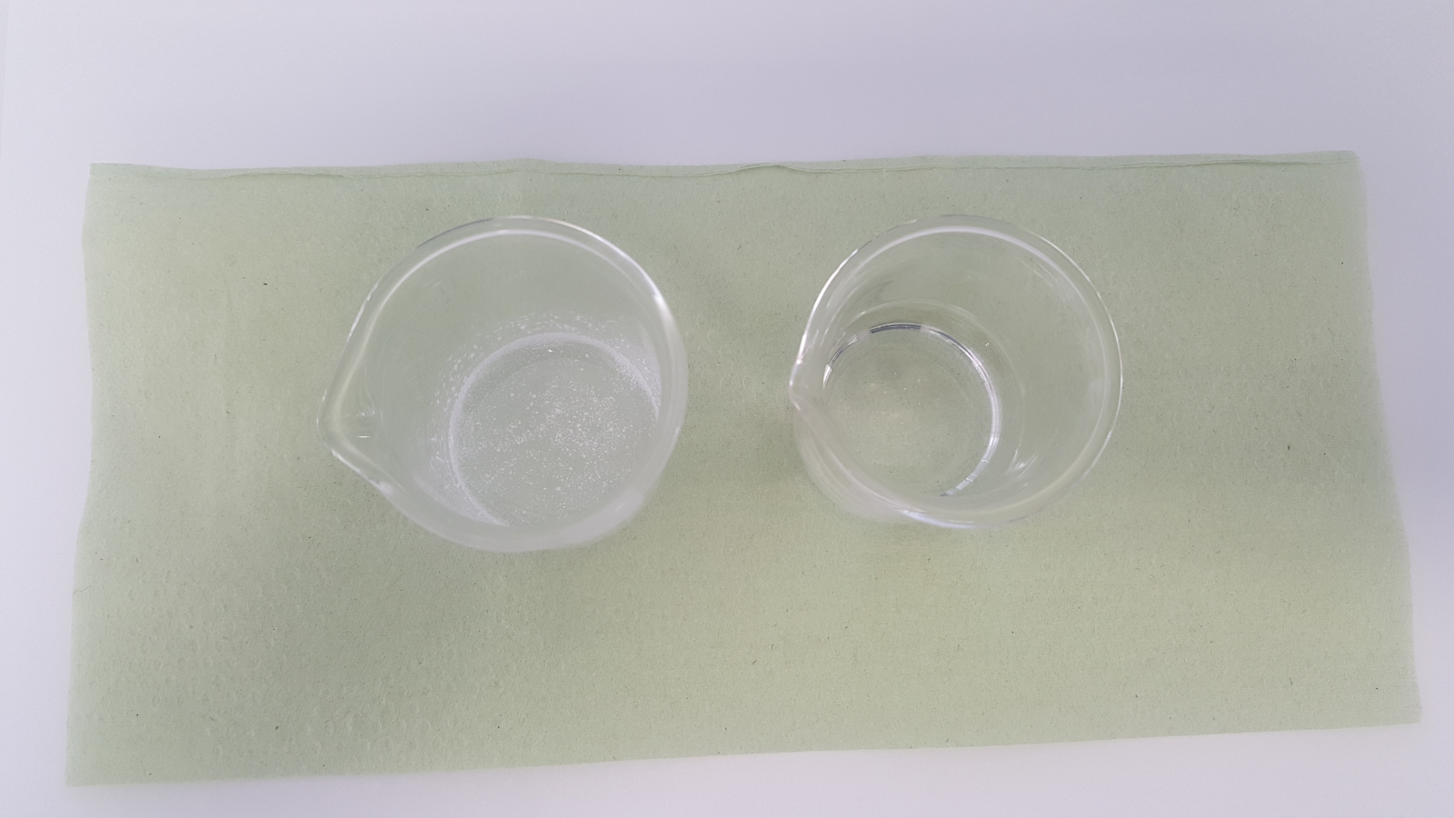 Diese anschließend im zugesetzten Alkohol zu lösen, ist recht schwierig. Im selbst durchgeführten Versuch ist zu erkennen, dass sogar eine relativ geringe Alkoholmenge ausreicht, um die kleine Menge Clobetasolpropionat komplett zu lösen. Der Glycerolzusatz dient in dieser Rezeptur aufgrund seiner osmotische Wirkung wohl nur als Feuchthaltemittel für die Haut.