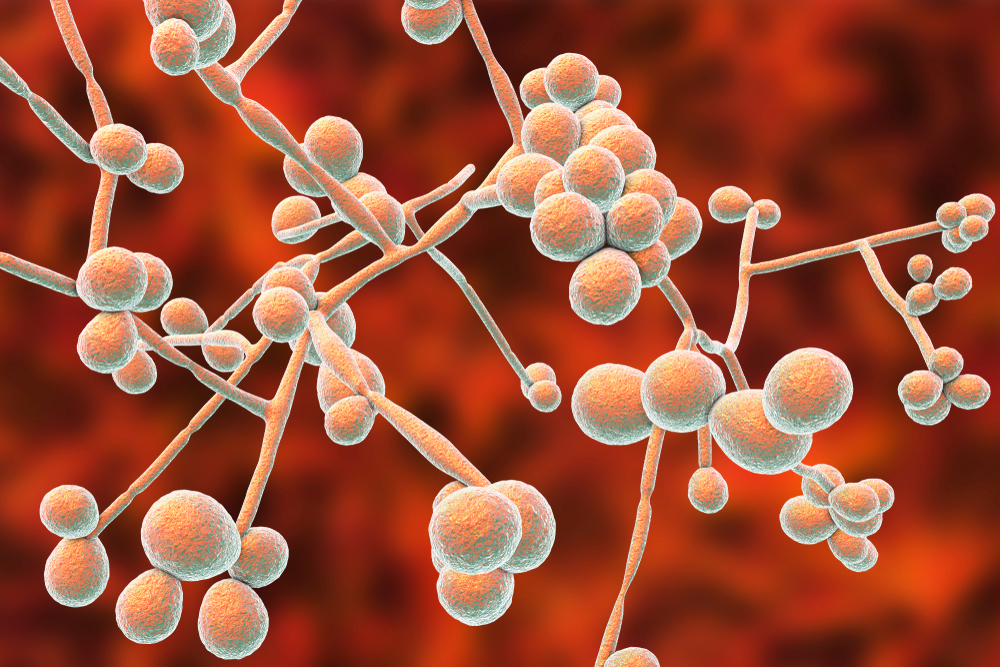 Mykosen, die den Körper befallen können, gibt es in unterschiedlichen Arten. Die bekannteste Pilzerkrankung wird durch Candida albicans ausgelöst. Normalerweise ist der Pilz ein harmloser Mitbewohner des Körpers und auf vielen Schleimhäuten zu finden. Doch er kann auch zum gefährlichen Krankheitserreger werden. Ist das Immunsystem durch Infektionen wie Corona oder nach Antibiotikagabe geschwächt, kann der Hefepilz ungehindert wuchern. In Folge treten Entzündungen der Haut oder Schleimhaut auf. Fast jede zweite Frau leidet in ihrem Leben mindestens einmal an einer vaginalen Candida-Infektion. In manchen Fällen, etwa nach einer Darmoperation, Chemotherapie oder einer Organtransplantation, gelingt es dem Pilz, über die Blutgefäße die inneren Organe zu befallen. Es kann eine tödliche Sepsis folgen.