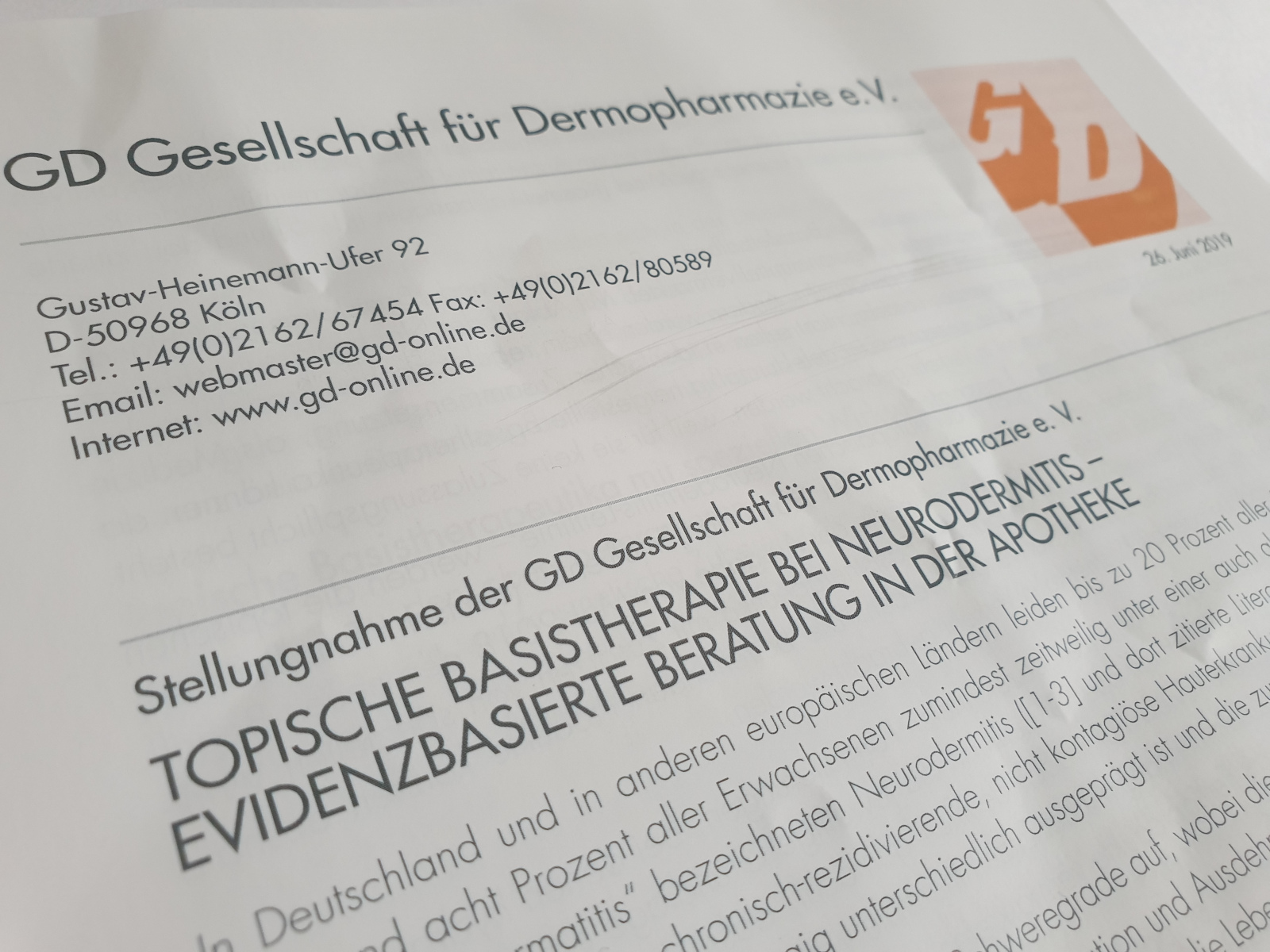 Die GD hat im Juni eine Stellungnahme zur Basistherapie bei Neurodermitis herausgegeben. Bis dato lagen keine offiziellen Beratungsempfehlungen in Bezug auf die Basistherapie vor. Die Stellungnahme soll als Entscheidungshilfe für die Auswahl eines geeigneten Produkts dienen. Die GD verweist in ihrer Stellungnahme darauf, topische Basistherapeutika bereits von Geburt an zu verwenden. Bei prädisponierten Säuglingen könne so die Wahrscheinlichkeit für das Auftreten einer Neurodermitis um bis zu 50 Prozent reduziert werden. Empfohlen werden in der Leitlinie im Bereich Emollienzien plus drei aktive Wirkstoffe: Saponine, Flavonoide und Riboflavin aus proteinfreiem Haferextrakt sowie Bakterienlysate aus Aquaphilus dolomiae oder Vitreoscilla filiformis.