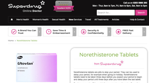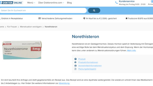 Im Internet wird das Hormon zudem angepriesen, um die Periode zu verschieben: Dazu wird eine Tablette mit 5 mg Norethisteron drei Tage vor der erwarteten Periode für maximal zwei Wochen eingenommen. In einigen Ländern wie der Schweiz ist das Präparat zwar verschreibungspflichtig, jedoch wird es häufig nach Rücksprache mit dem Arzt verordnet. Britische Medien berichten derzeit ebenfalls über die „Holiday-Pille“: In Großbritannien wird einem das Hormonpräparat bereits nach kurzer Beratung in der Apotheke ausgehändigt. Das Vorgehen soll eine Reaktion auf den Ärztenotstand darstellen.